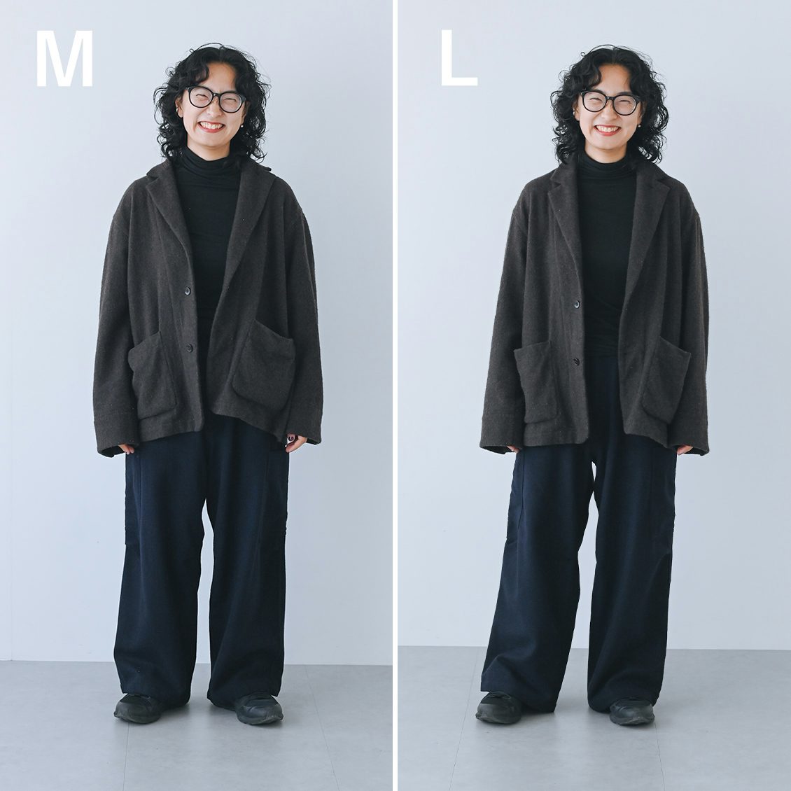 たっぷりしたシルエットに、ゆったりした着丈で、ウールパンツなんですが程よいカジュアル感があって。