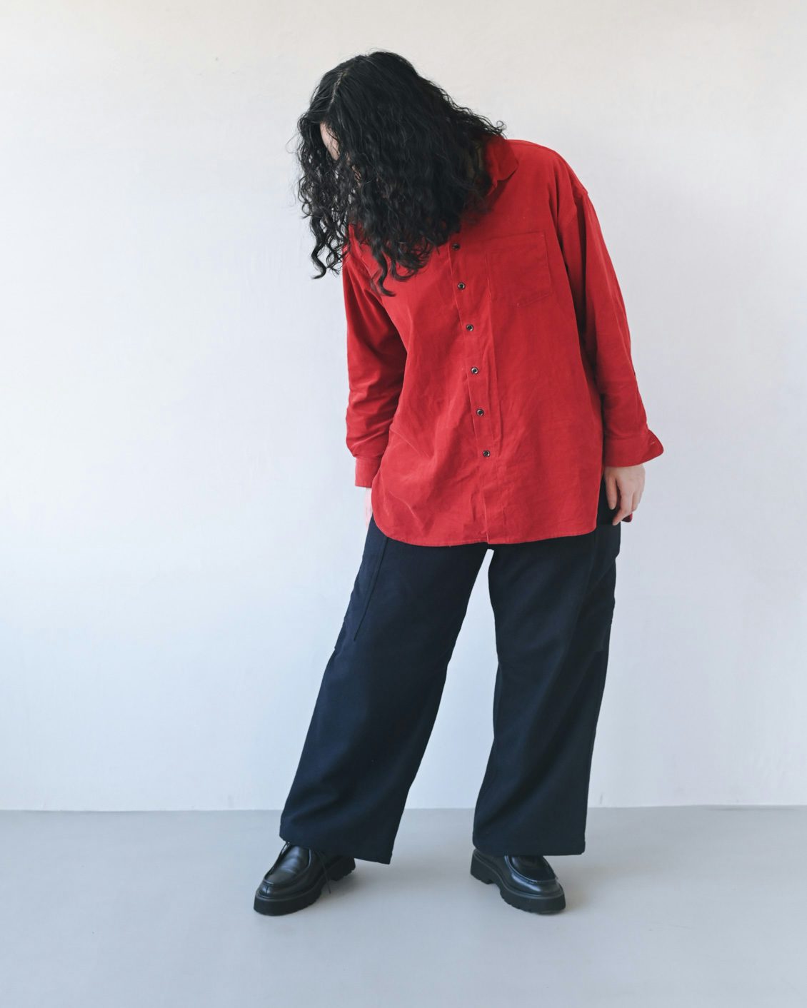 普段ボトムスのサイズ選びは、快適さと見た目の綺麗さの狭間で悩みがち。当店のパンツだとMサイズを選ぶことが多いものの、ゆとりのあるはき心地が好きで、Lサイズを選ぶことも。