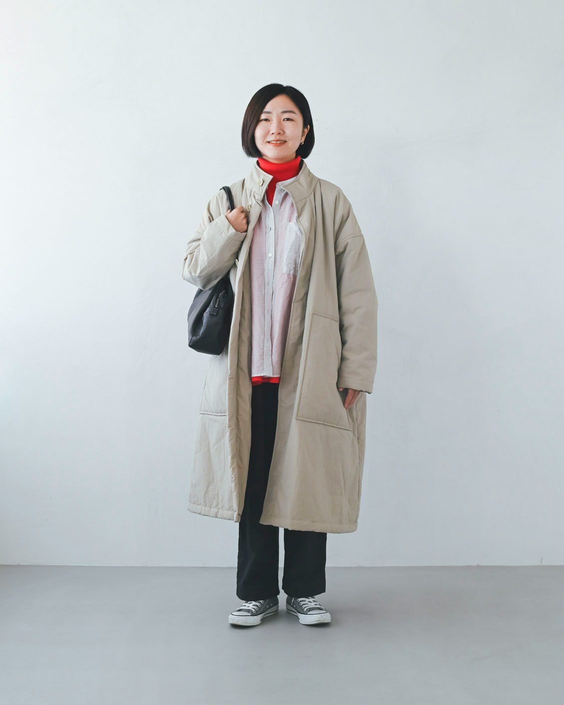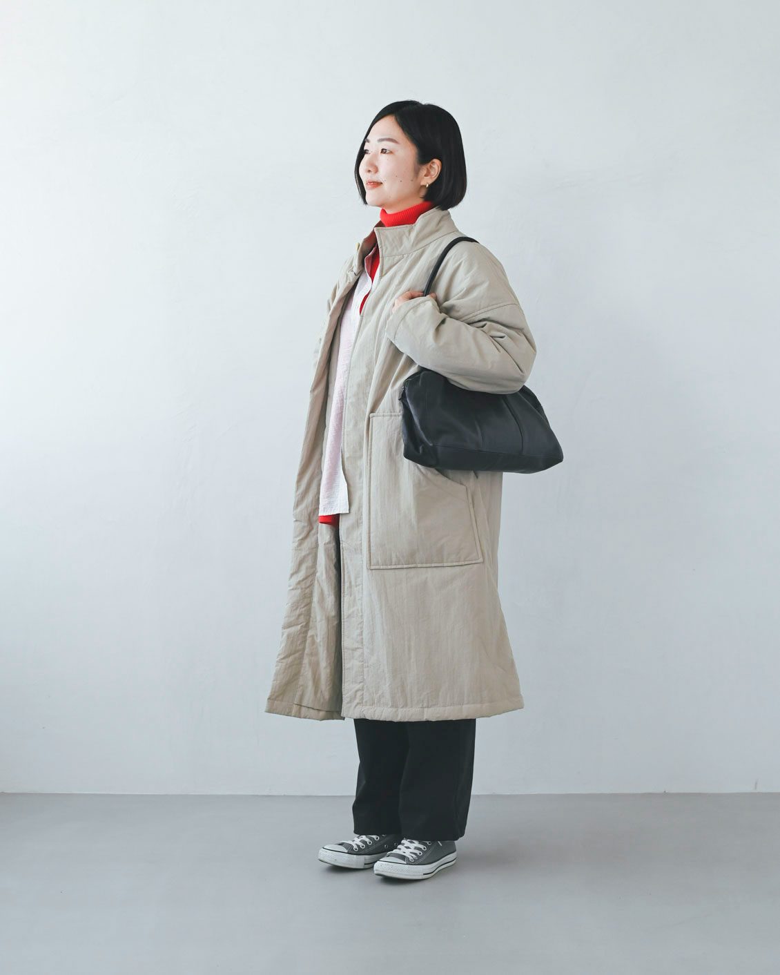 様々なシーンでの使い勝手の良さはもちろんのこと、重ね着しがちな冬だからこそ、その軽さや、コーデへの合わせやすさがなお嬉しい、そんな万能バッグだと感じます。