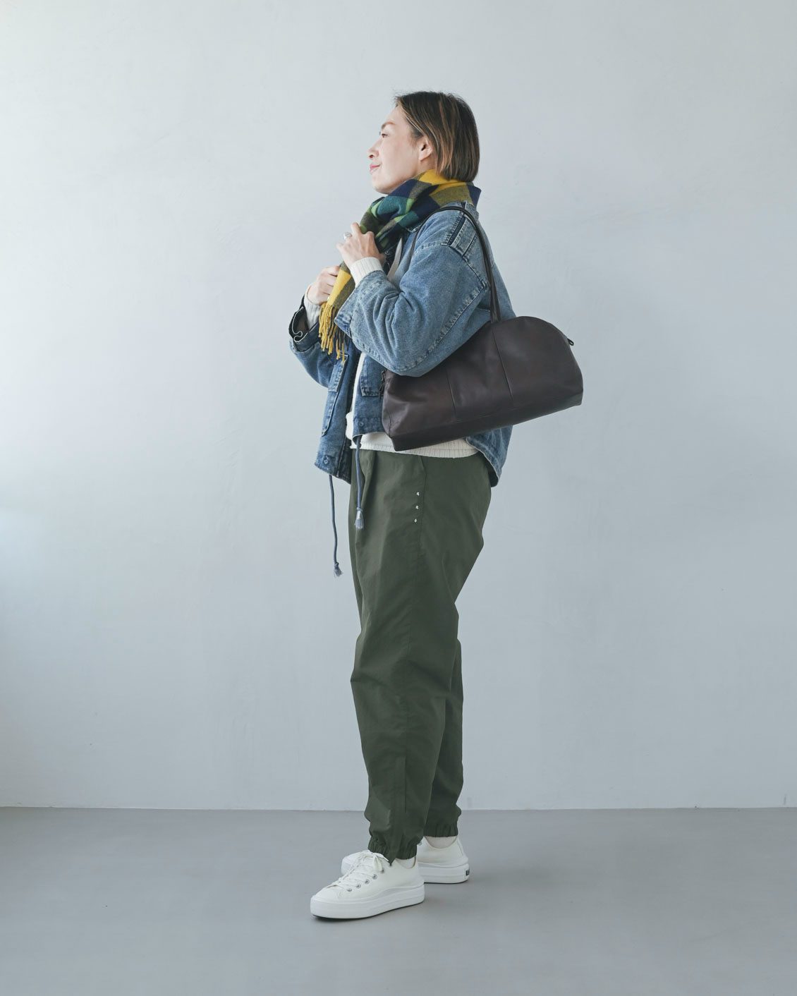 「普段は、何にでも合わせやすい黒いバッグばかり使っているので、ブラウンのバッグに合わせるコーデは、全体のトーンや配色が難しいのかと思っていました。