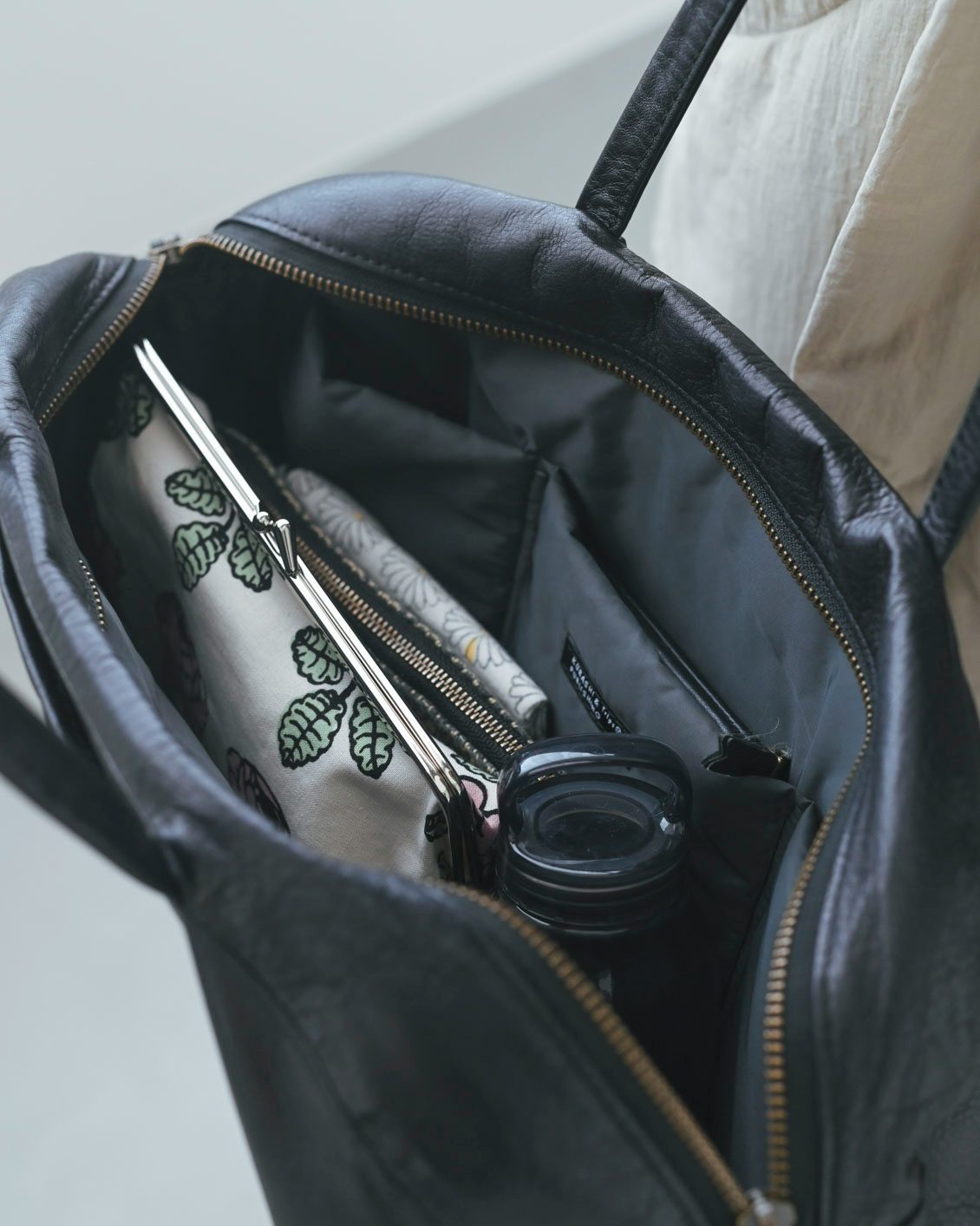 私は荷物が多い方なので、休日もある程度容量が欲しいタイプ。このかばんはまず間口が広いから中身がとても見渡しやすく、物が迷子になりづらいです。色々と入れてもほどよく余裕があるサイズ感なので、シーンを選ばずに使える安心感があります」