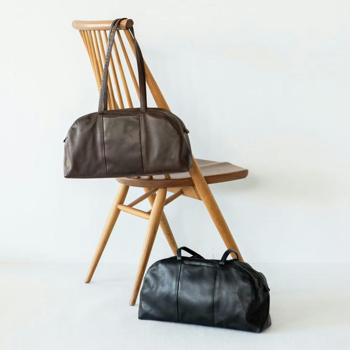袋から出した瞬間は、少しぺたっとした形に見えてしまうかもしれませんが、そんな革のやわらかさや風合いが、このバッグの良さだと思います」