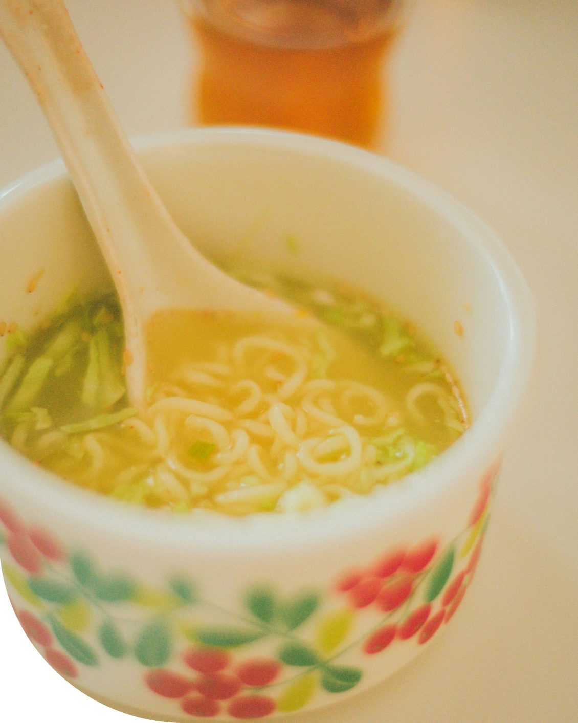 袋麺を作ったら、ちょうど半分ずつ入る量でした。
