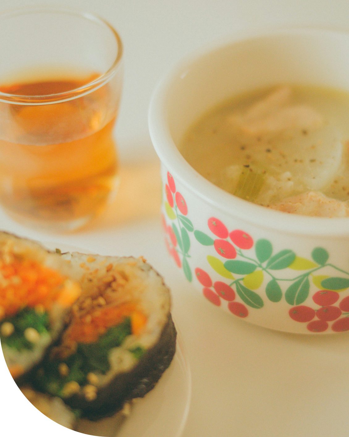 リンゴンベリーの柄って、韓国料理にも合いますね。