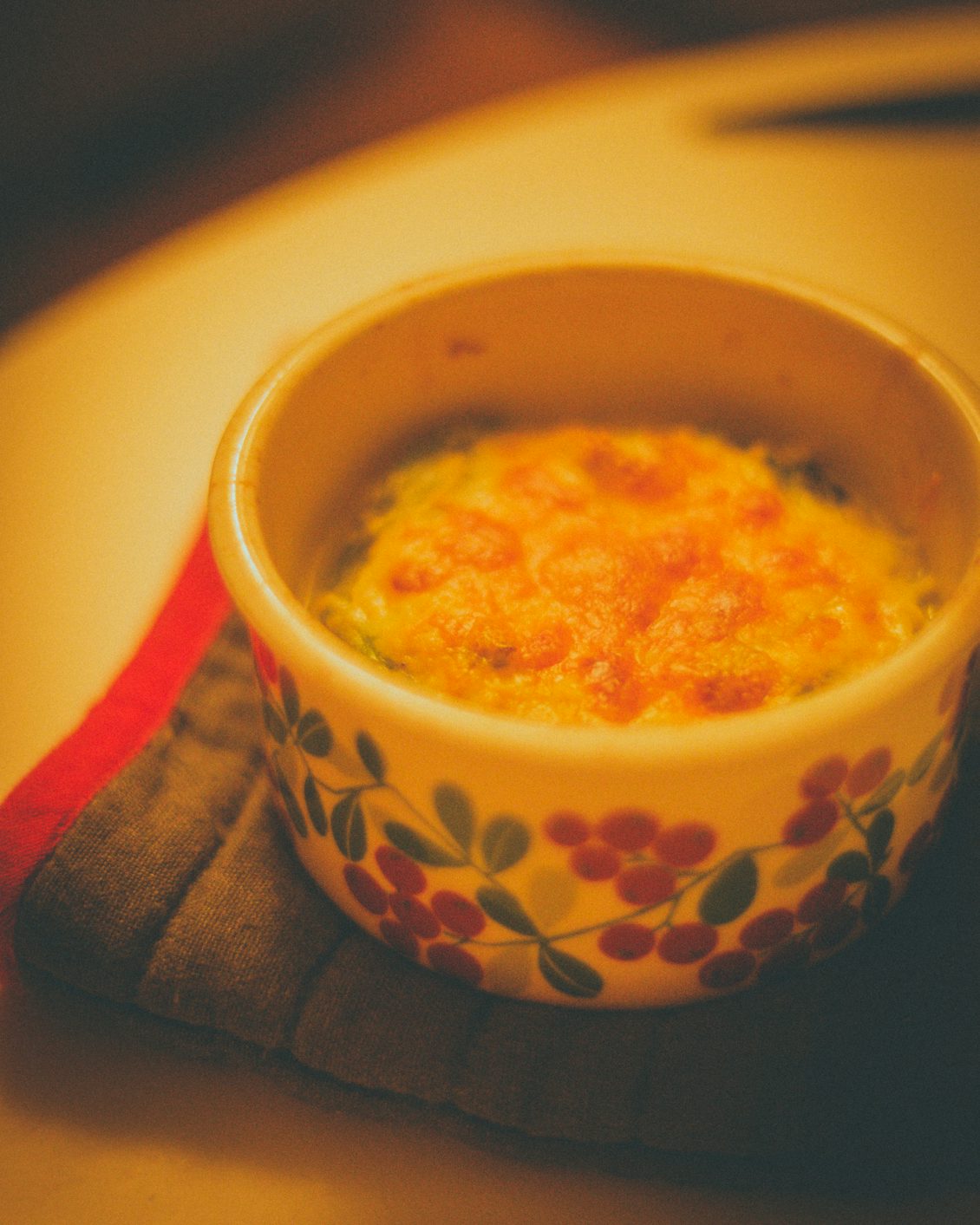 ここでさらに良さに気がついたのですが、このジャー、1人分のグラタンとしてベストなサイズ感です。