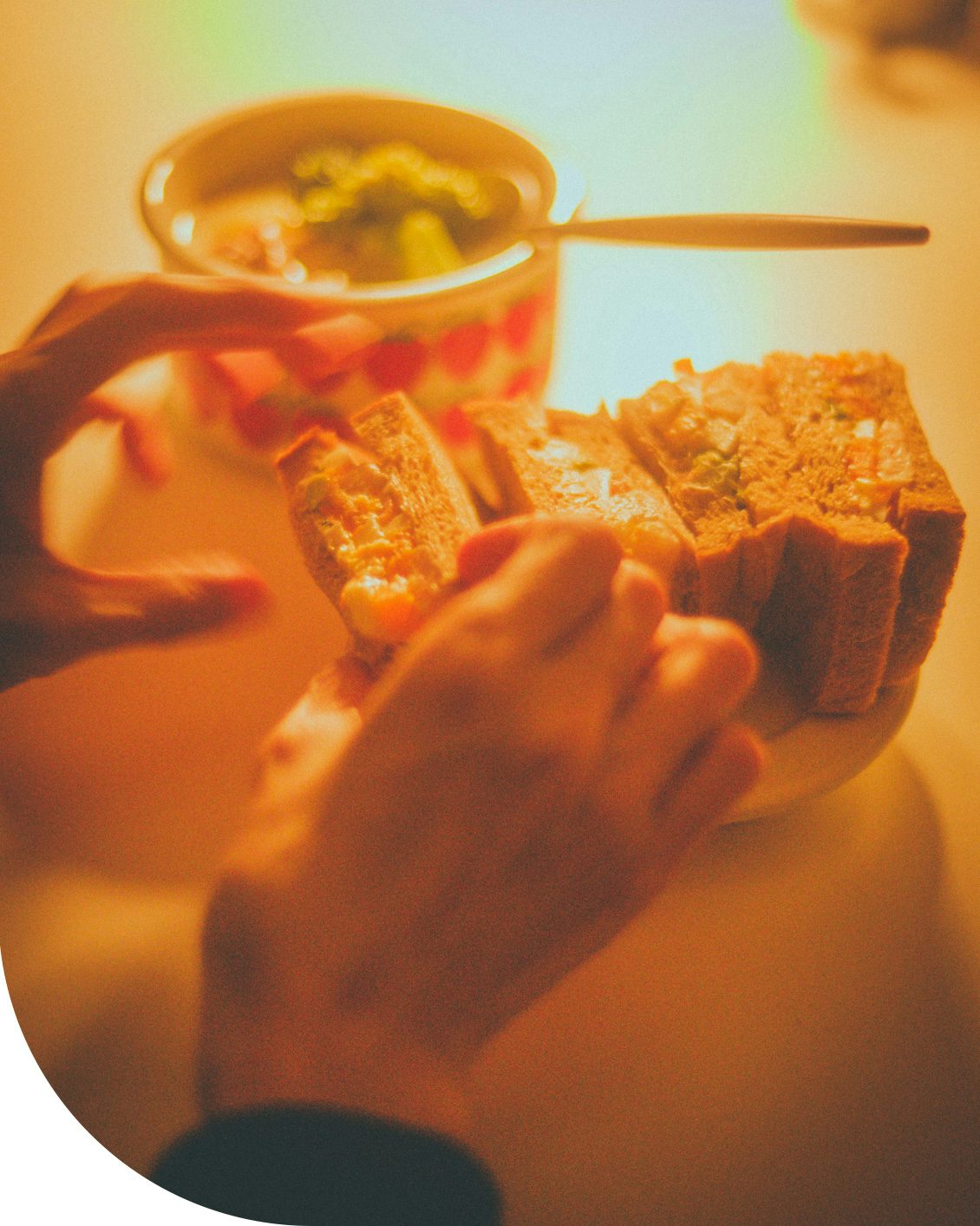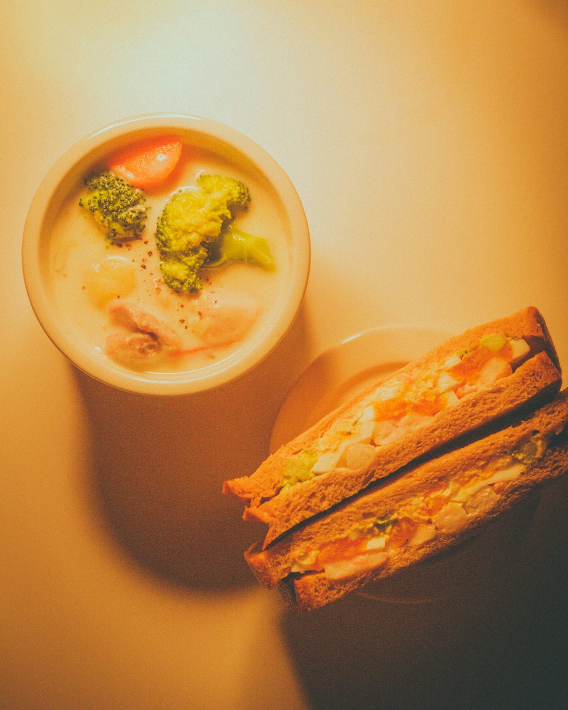 フタには、サンドウィッチをもりもりに置いてみましたが、ロールパンをころんと置くのもよさそうです。