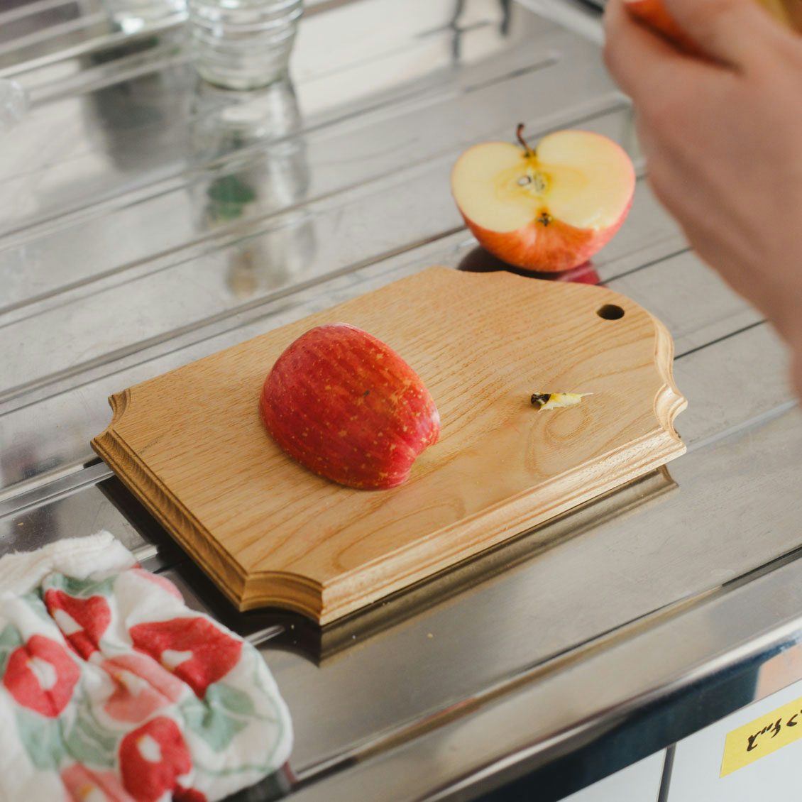 余裕のある休日は、器もお気に入りのものが使いたくなるので、これはカッティングボードの出番だ!と、りんごをカットしてみました。