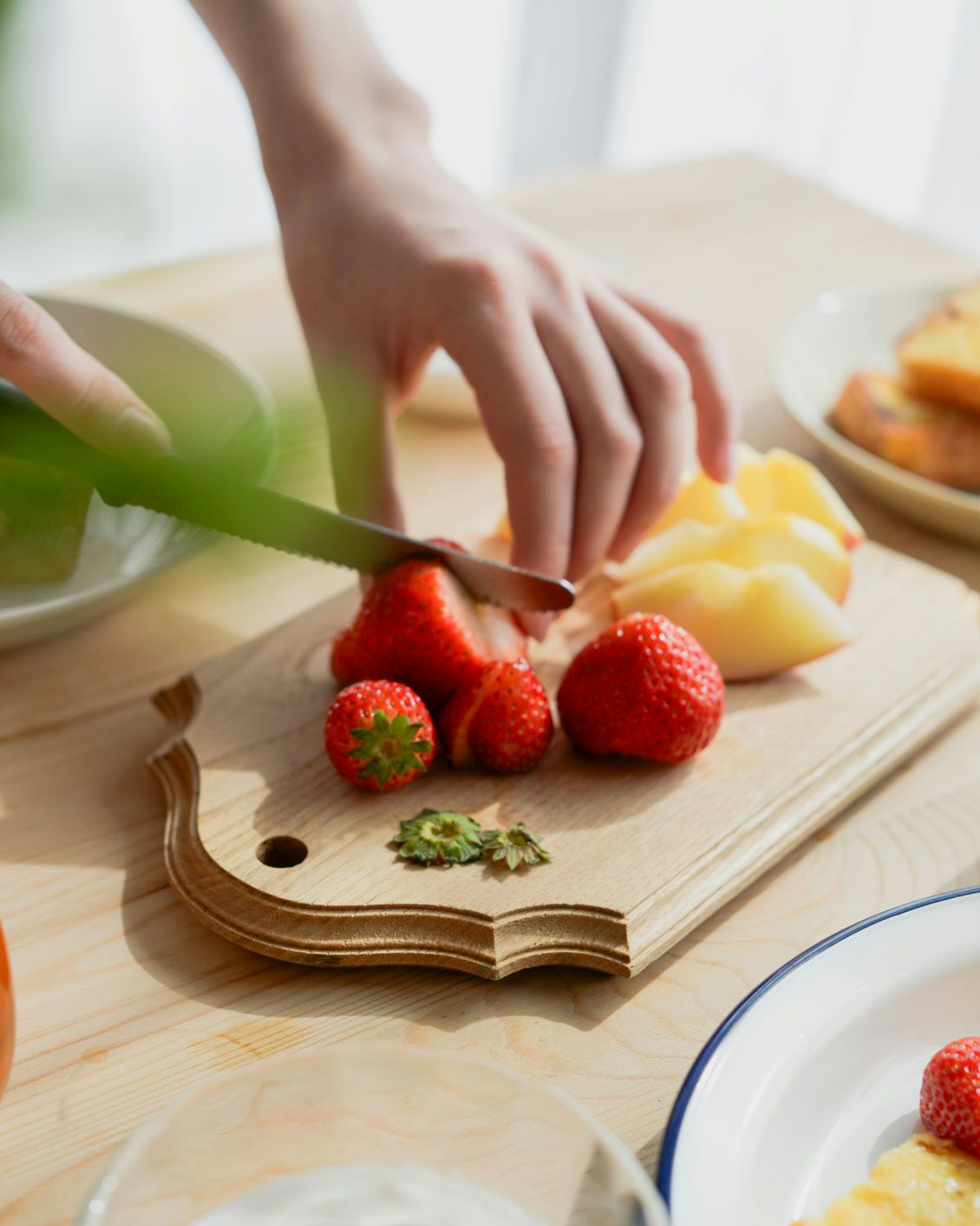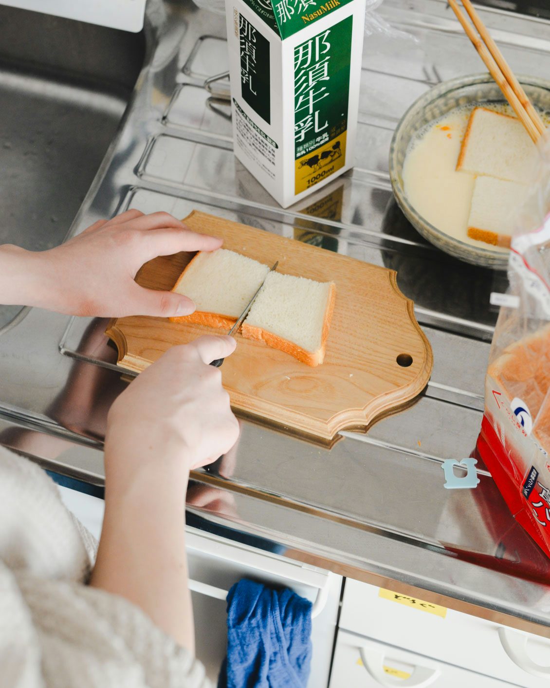 ▲フルーツを切る前に、フレントースト用の食パンもささっとカット
