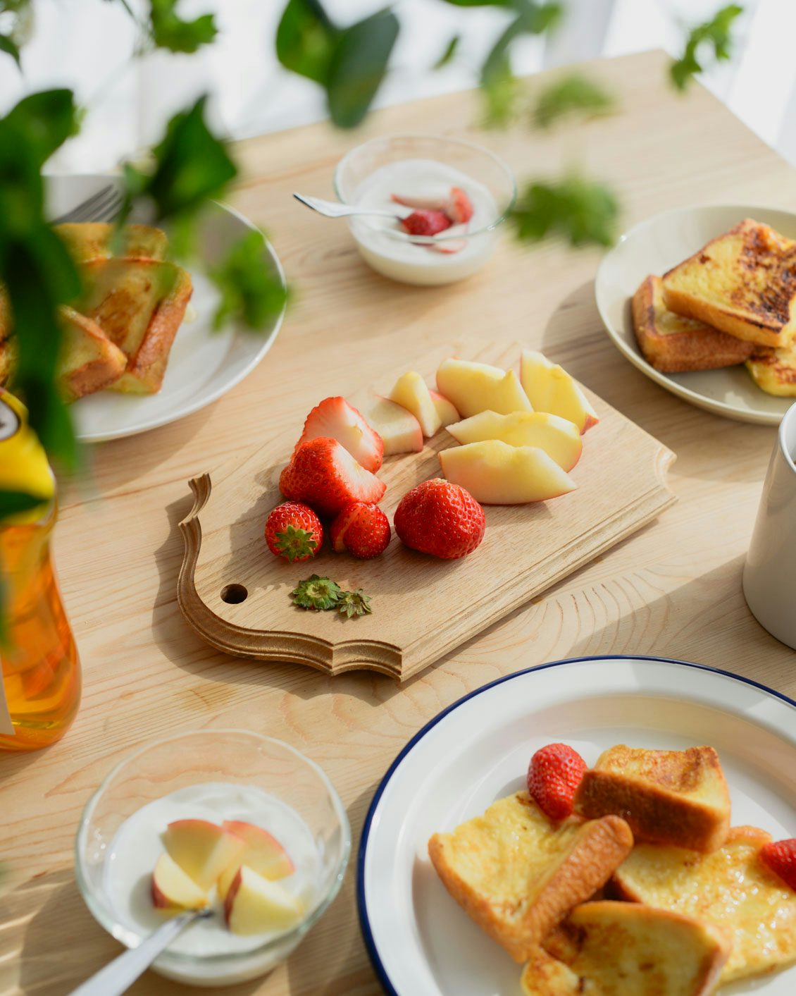 テーブルの真ん中にカッティングボードがあるだけで、なんだか特別感がぐんとアップ。ご機嫌な一日の始まりになりました。