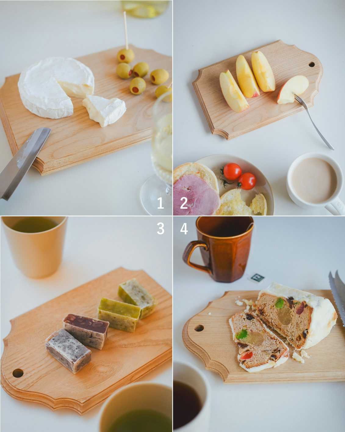 ホールケーキをテーブルの上でわいわい言いながら取り分けるのが楽しいみたいに、たとえちょっとしたパンやおやつでも、せっかくなら皆んなで「かわいい〜おいしそう〜」と愛でながらカットして食べるほうがおいしいよね、という気持ちがつのり、プレートにもなる天然木のカッティングボードのSサイズを迎えてみました。