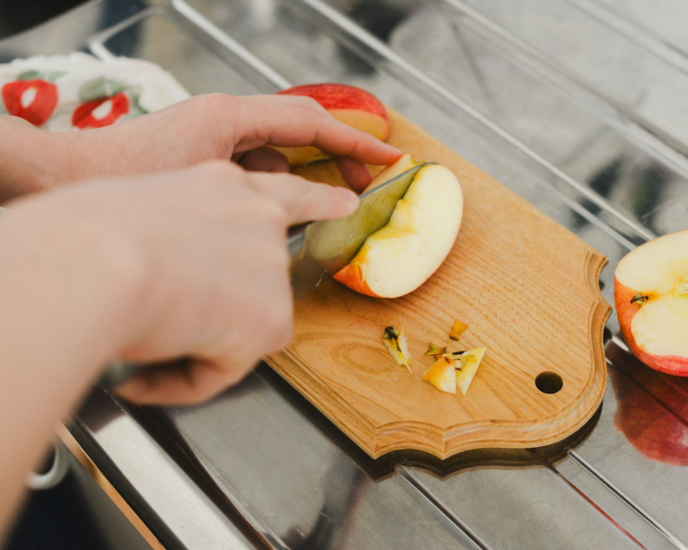 Sサイズは、りんご1/2個をカットするのにちょうどいいサイズ感です。