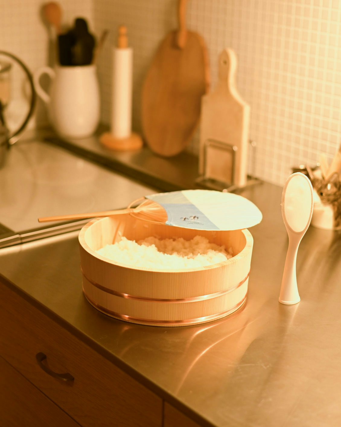 「木曽椹は、お米に含まれる水分を適度に吸収・放湿してくれるので、お酢を混ぜても水分過多にならず、もっちりとした仕上がりにしてくれる」のだとか。