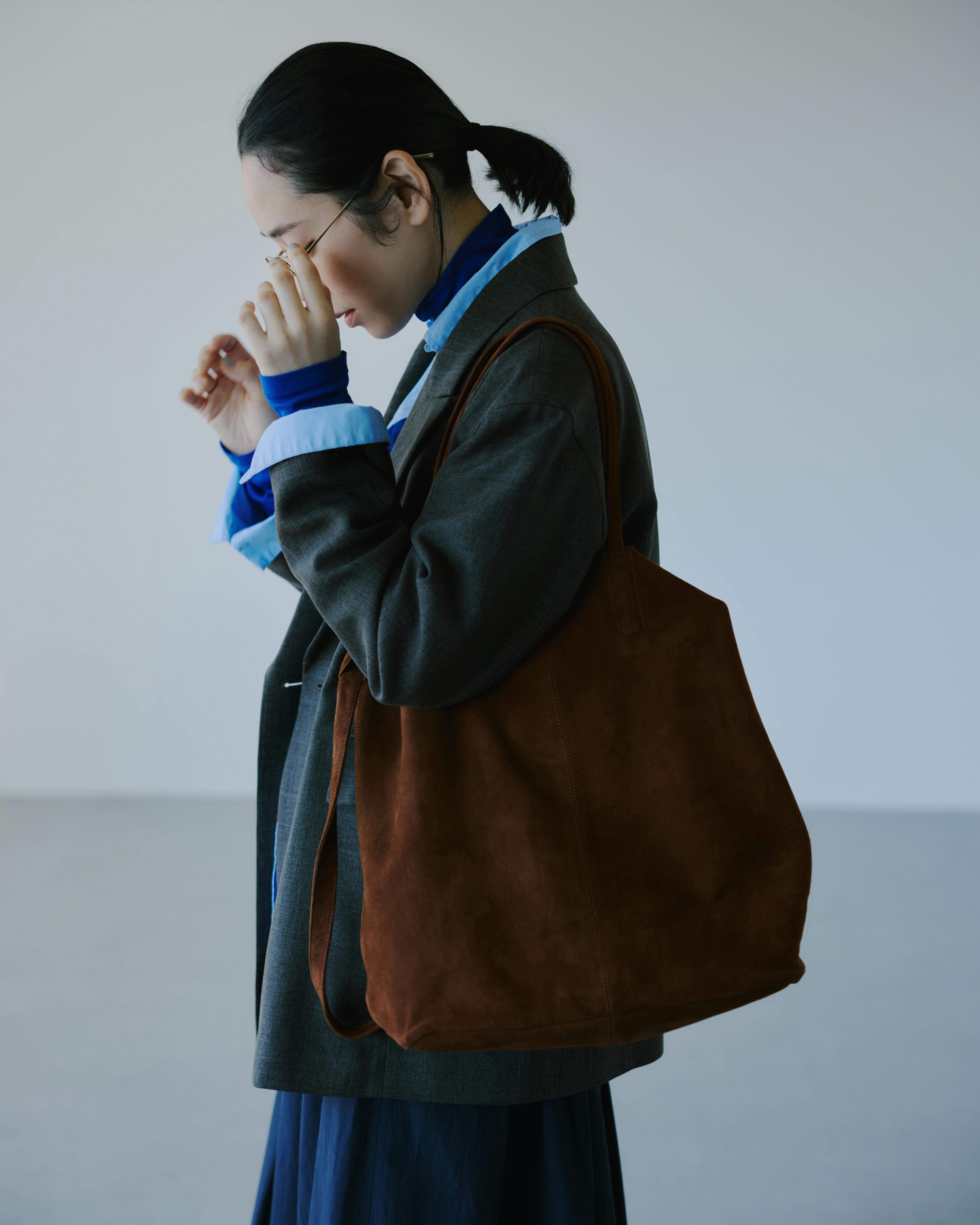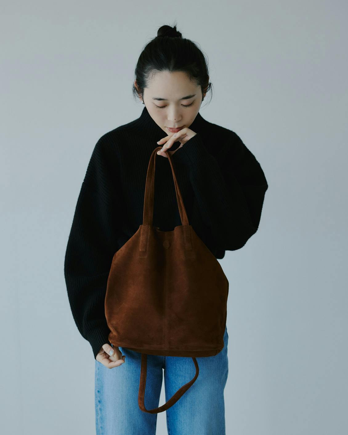 そんな時、このスエードバッグならレザーの上品さに程よくカジュアルさも加わって、いつもの装いが新鮮に感じられたんです。