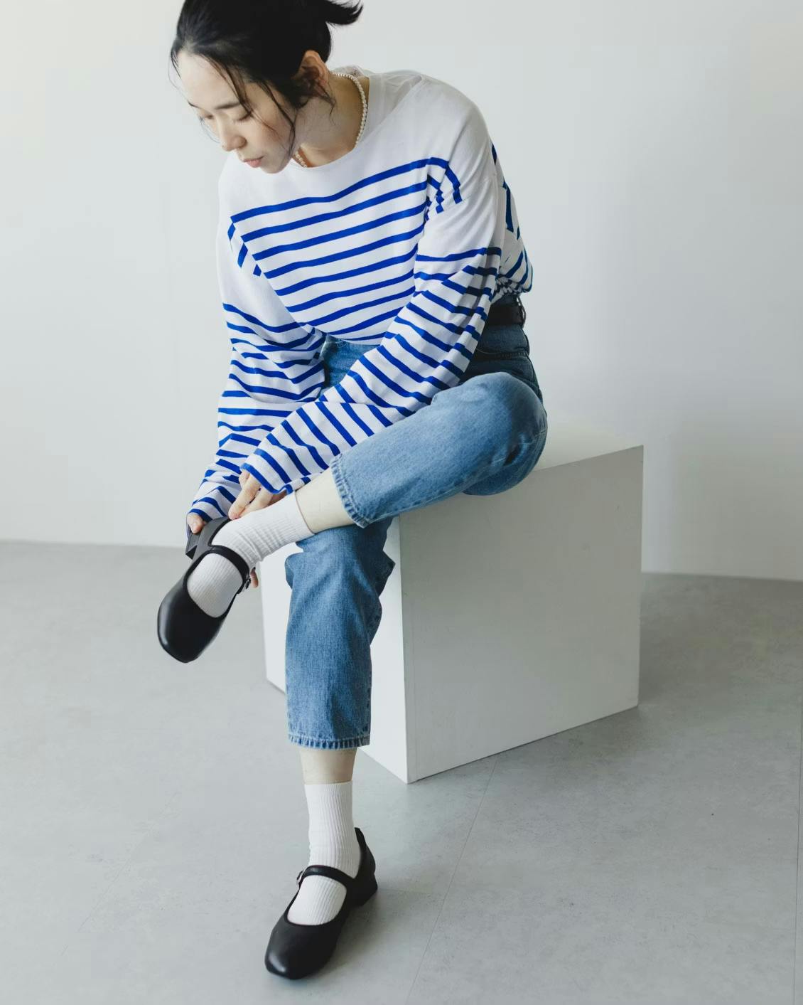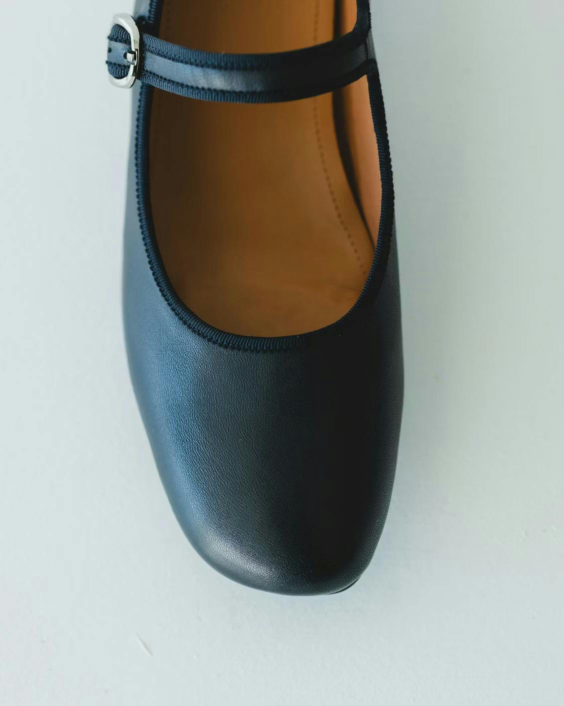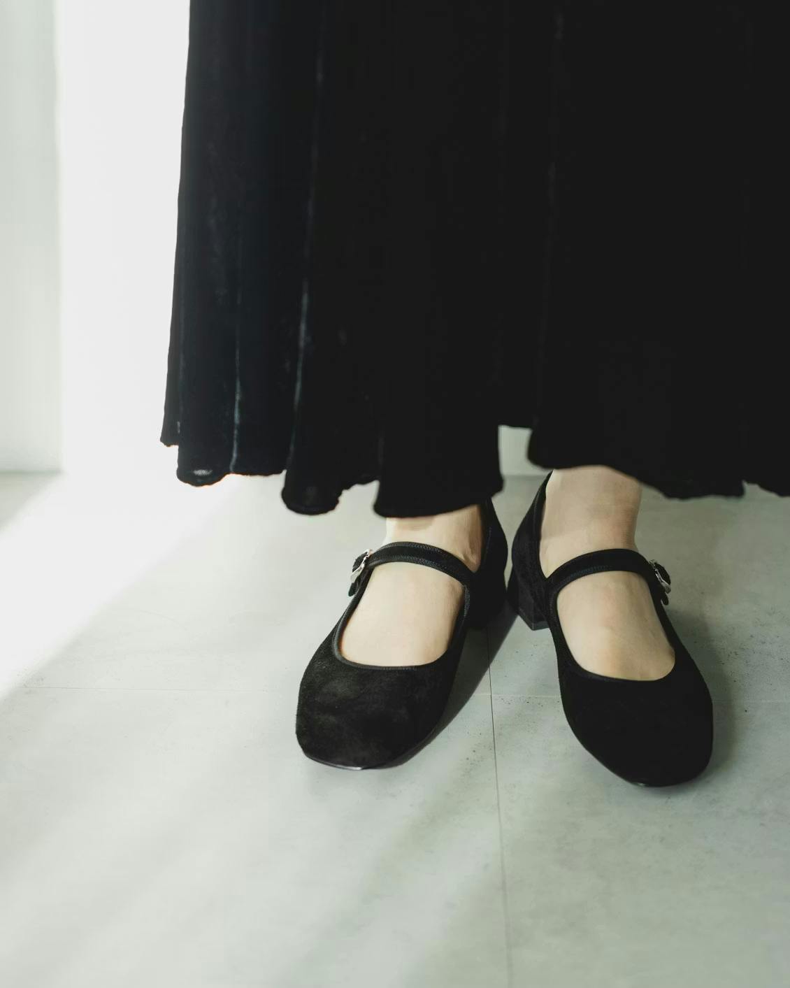 直線的なラインが加わることで、メリージェーン型ならではの甘さを、ほどよく抑えてくれるため、足元に凛とした表情を添えてくれます。