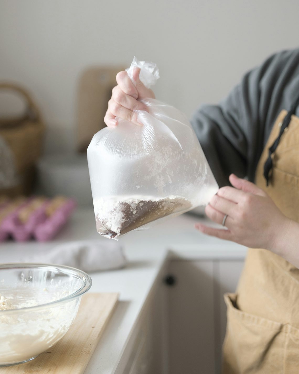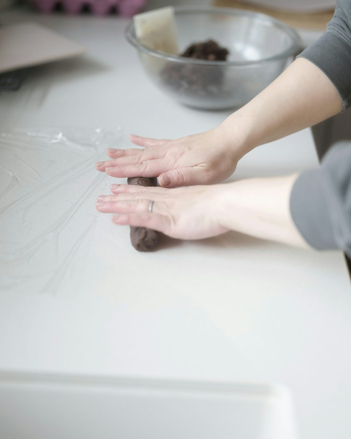 「わたしはキッチンの作業台を消毒して生地を丸めるのですが、粉が多めのレシピなのもあって、この方法だと打ち粉なしでも生地がくっつかないんです。小さめのカッティングボードで転がすとまとまりやすいですよ」