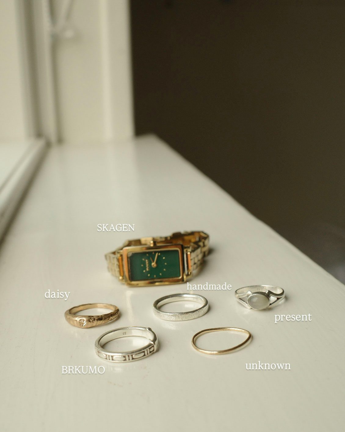 「シルバーとゴールドのアクセサリーをミックスして身につけるのが好きです。最近は、派手すぎず、スタイリングにさりげなく溶け込む、シックなデザインを組み合わせることが多くなりました。