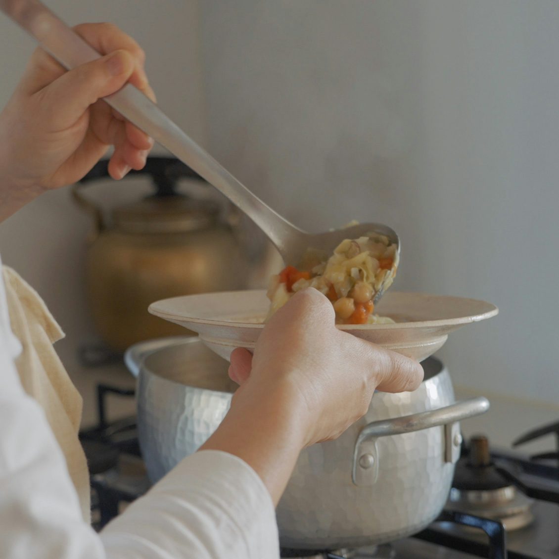 朝ごはんに限らず、よく作るというのが野菜をたっぷり入れたスープ。アレンジをすることを想定して、味付けはシンプルに塩だけで作るのだそう。