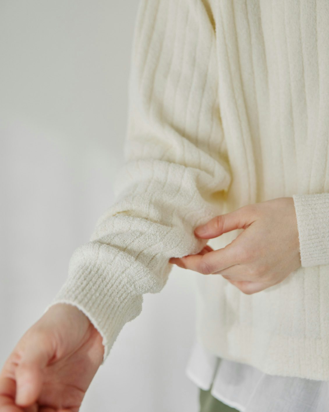 そんな本日ご紹介するのは、「ゆったりシルエットのリブ見えニット」です。