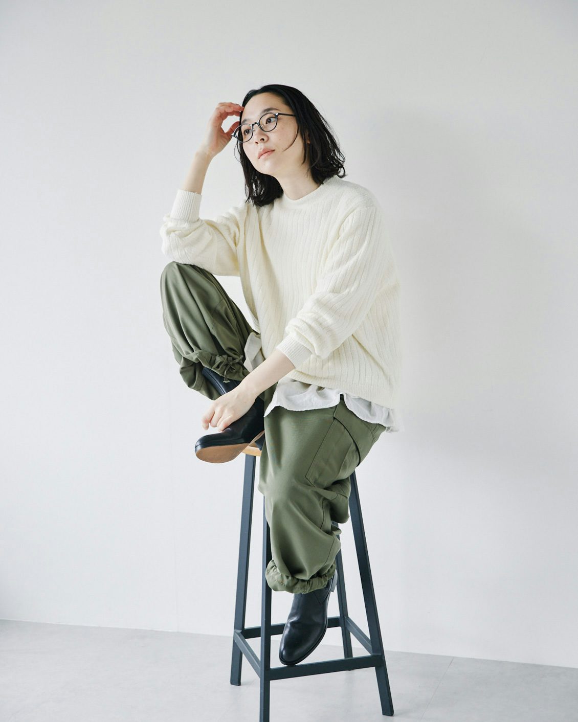 プロジェクト『i計画室』を主宰する、山村ヒロミさんに、リブ見えニット3色を着回していただきました。