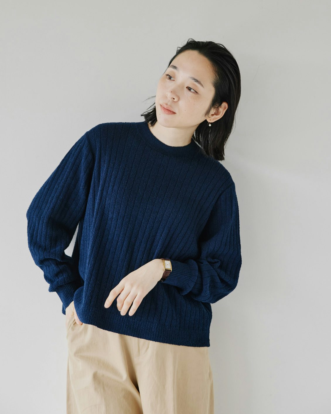 タイトに見えない、リブ見えニット