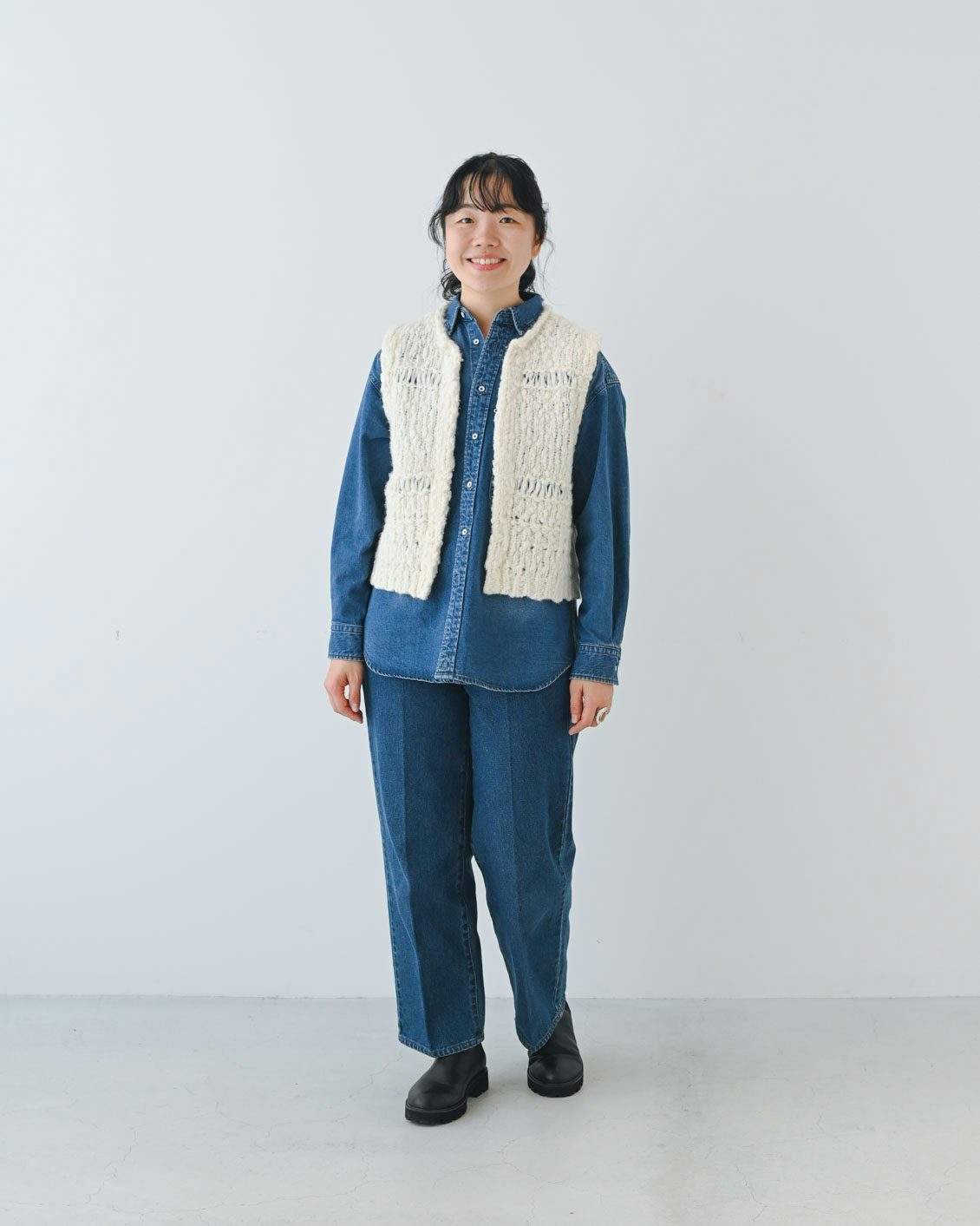 デニム×アイボリーで爽やかに