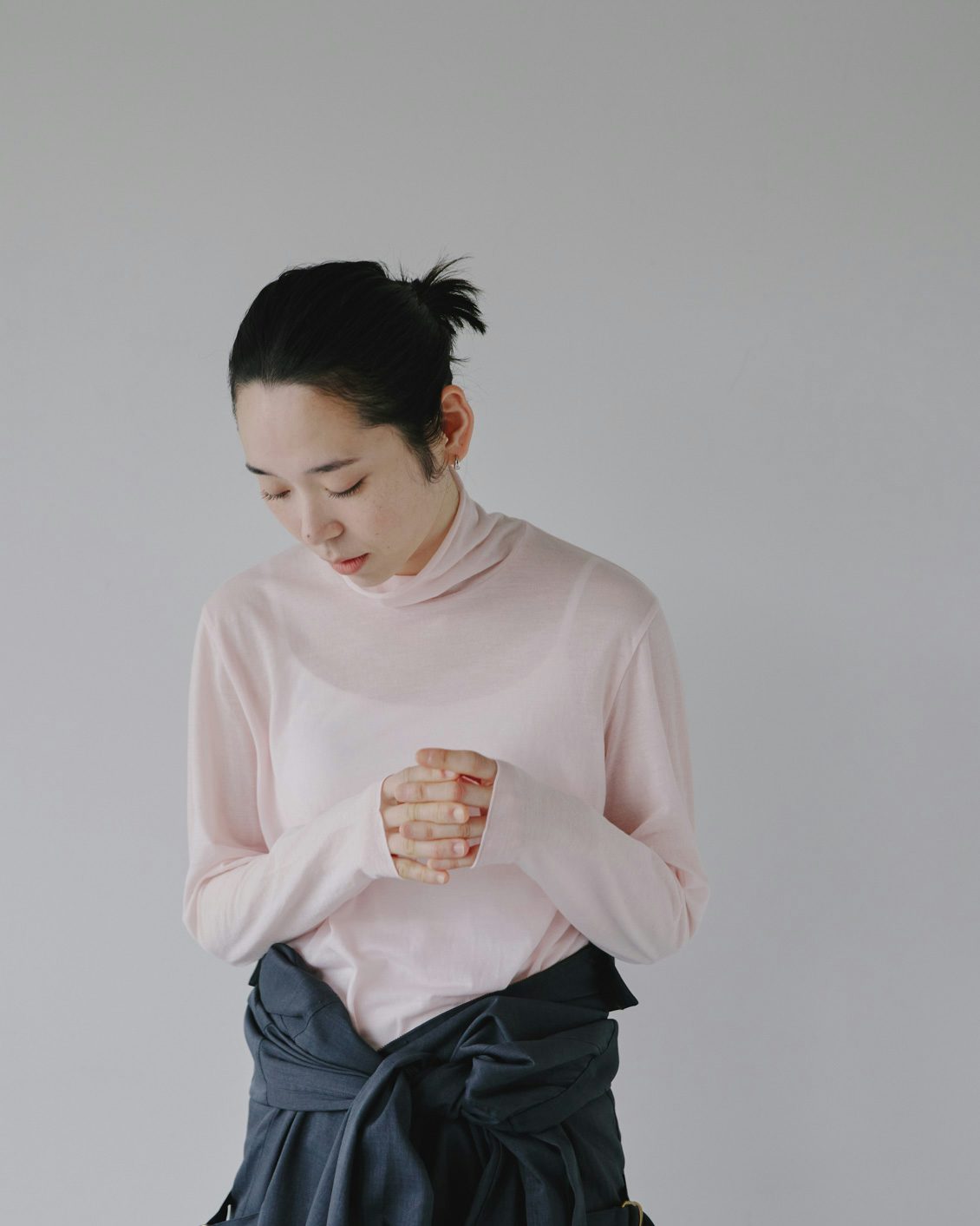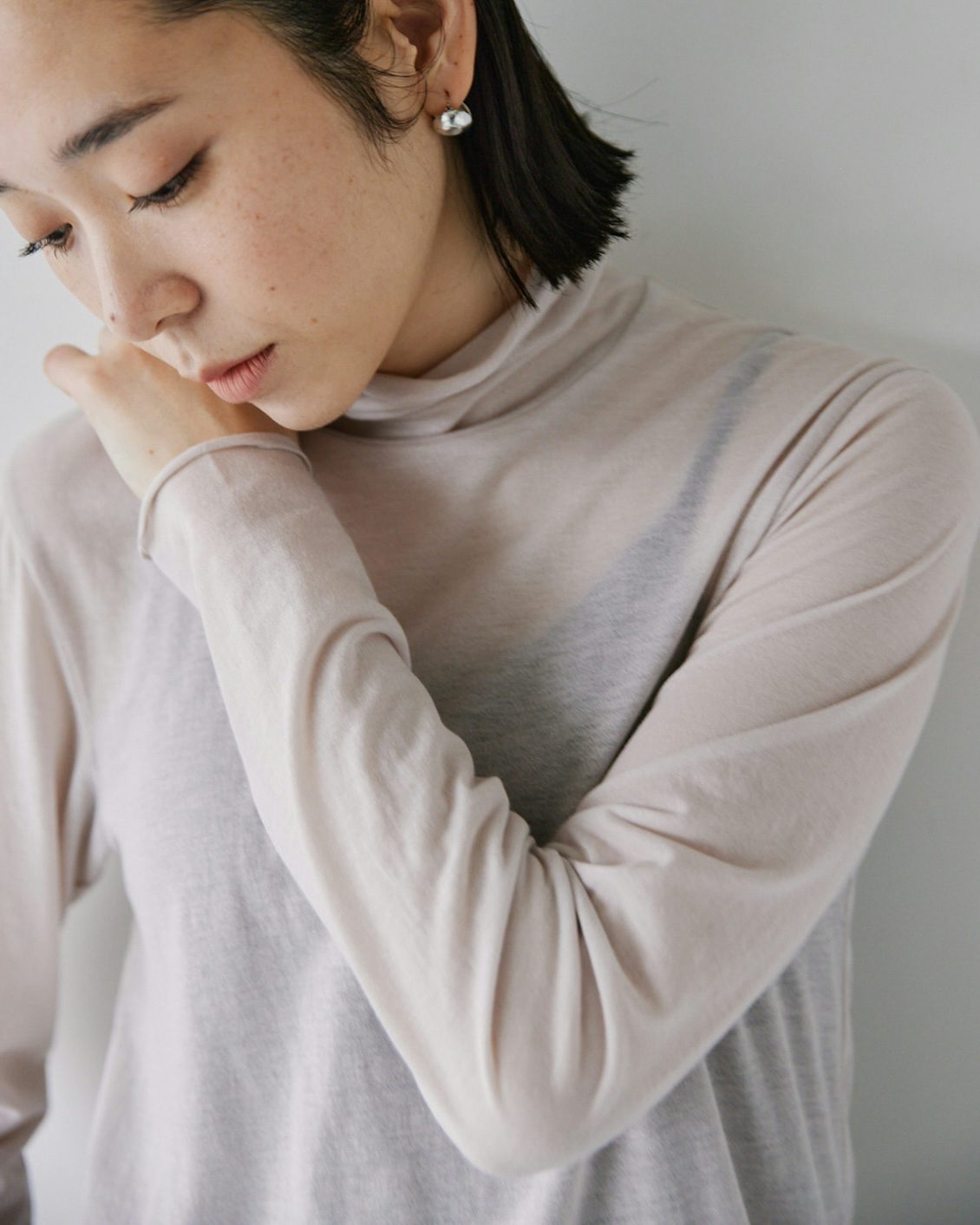 繊細な見た目と、日常での使いやすさ。そのどちらも大切にしたタートルネックカットソーです。