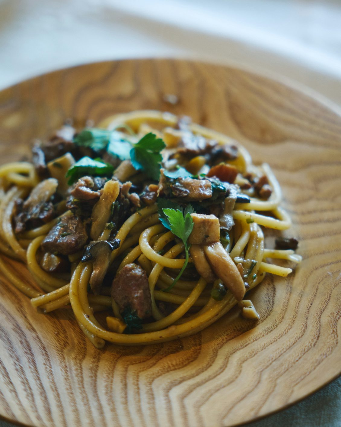 湯を沸かし塩を入れてパスタを茹でる。フライパンに鴨肉(もしくは鶏肉)の脂を乗せて、みじん切りしたニンニクと玉ねぎ、小さく切った鴨肉と血抜きしたレバーを炒めて、塩と白ワインを加える。細かく切ったイタリアンパセリ、裂いた木の子、甘栗を加えて煮込み、茹で上がったパスタを和える。塩で味をととのえ、お皿に盛り付けて、イタリアンパセリを散らして、召し上がれ。
