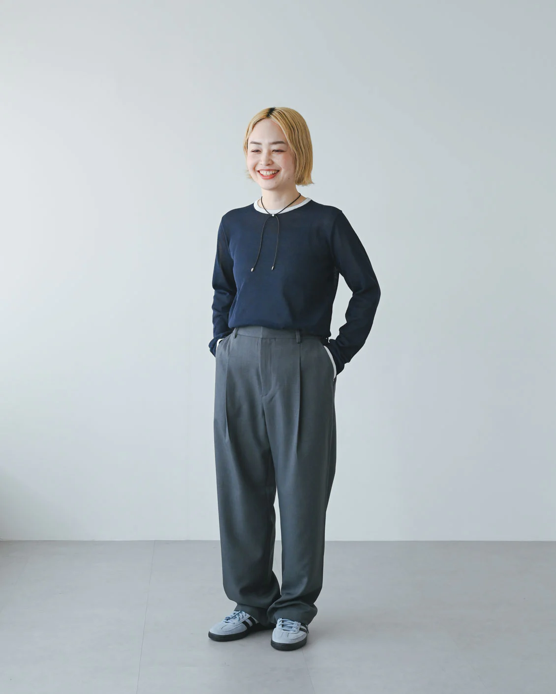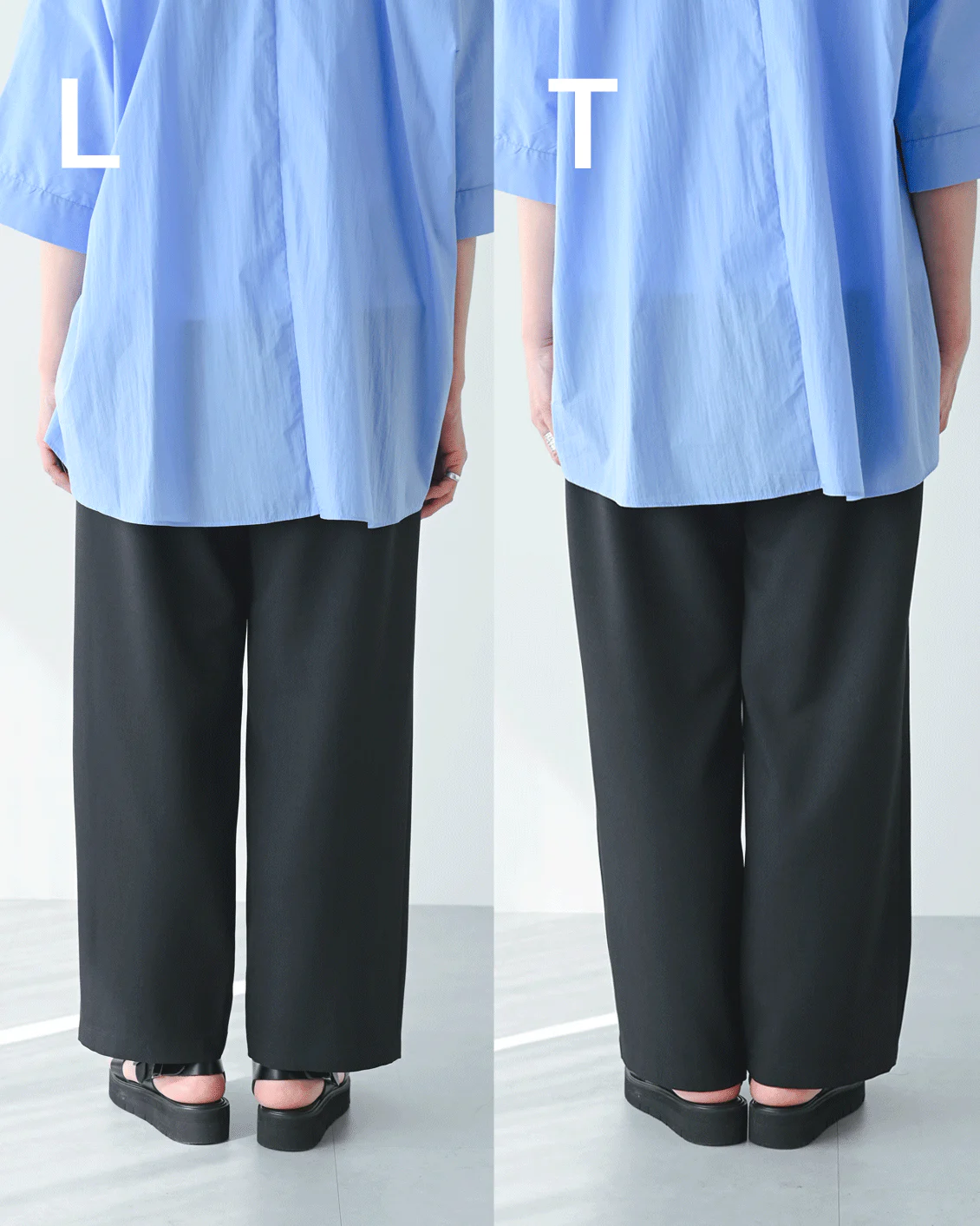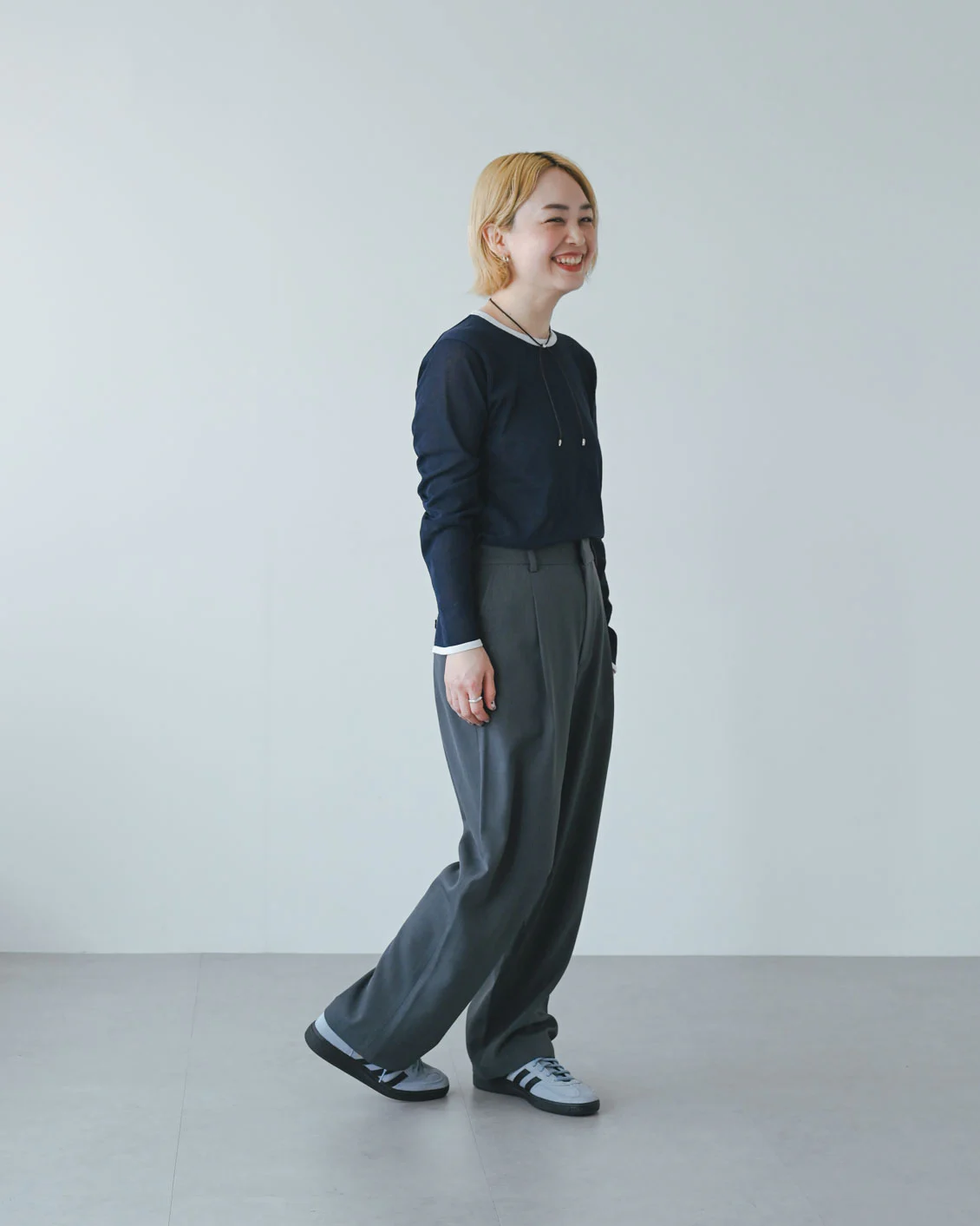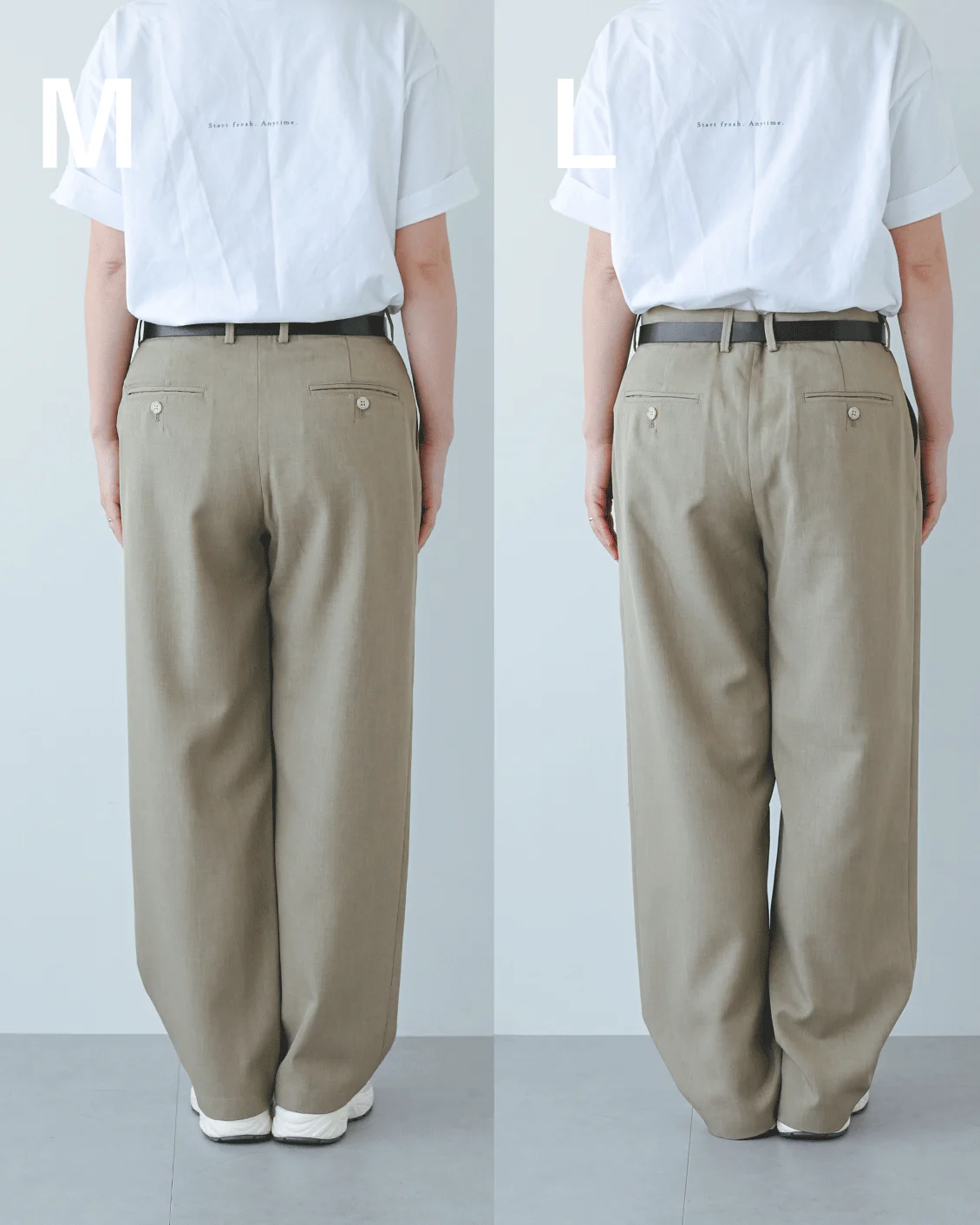後ろのシルエットもきれいです。ウエストをインしたり、アクセントにベルトをつけたりといろんな着こなしを楽しめるパンツだなと思いました」
