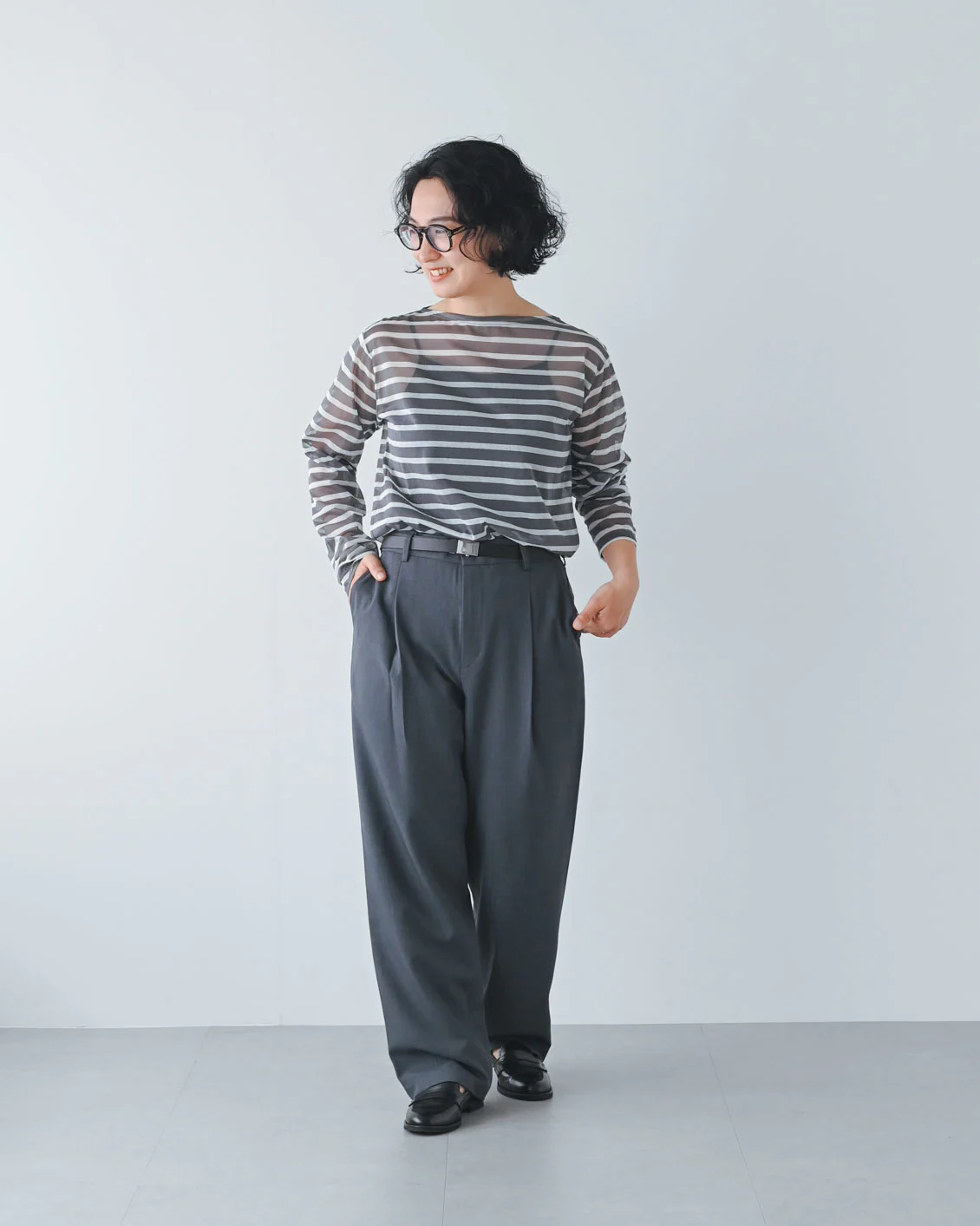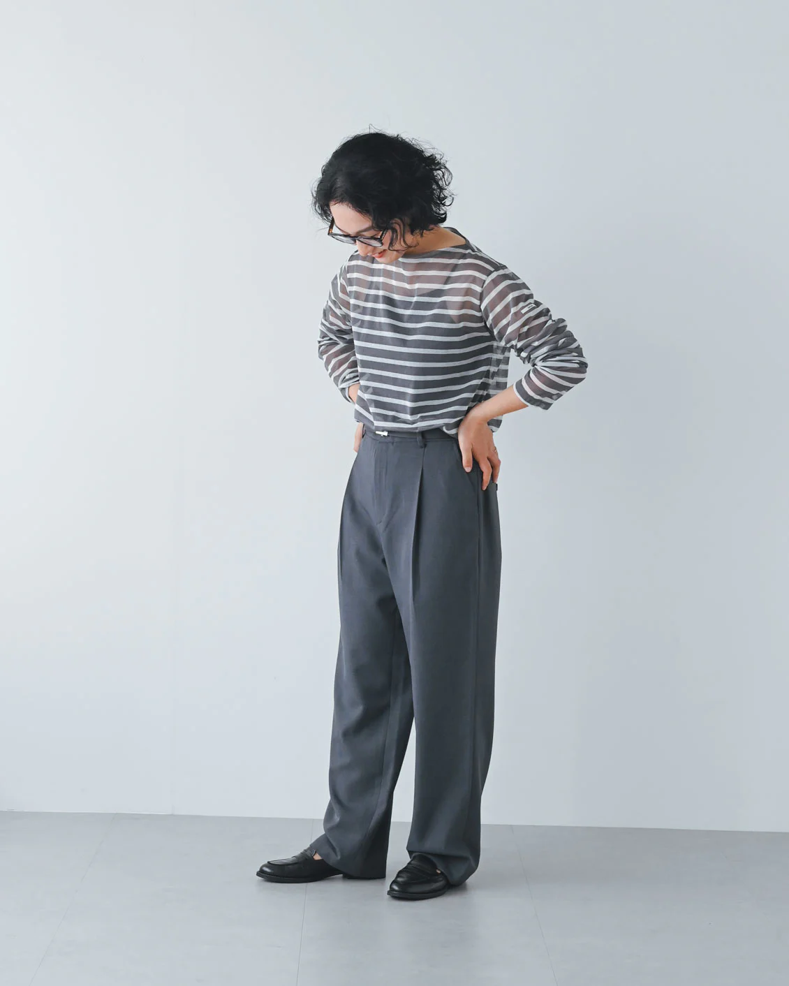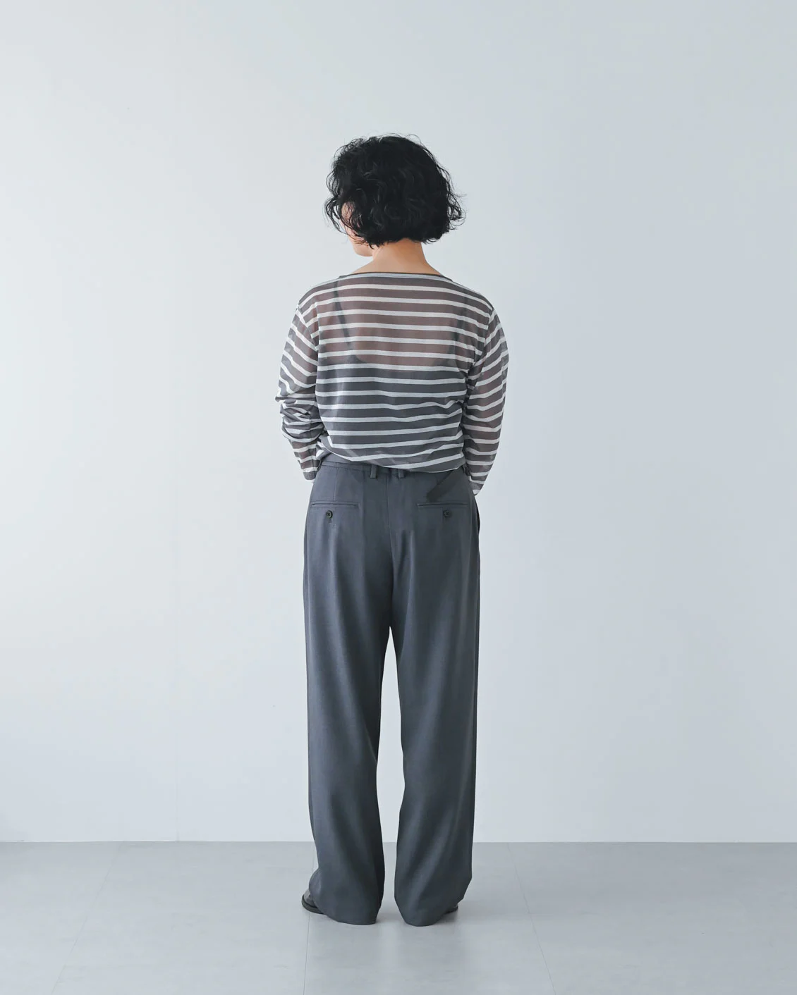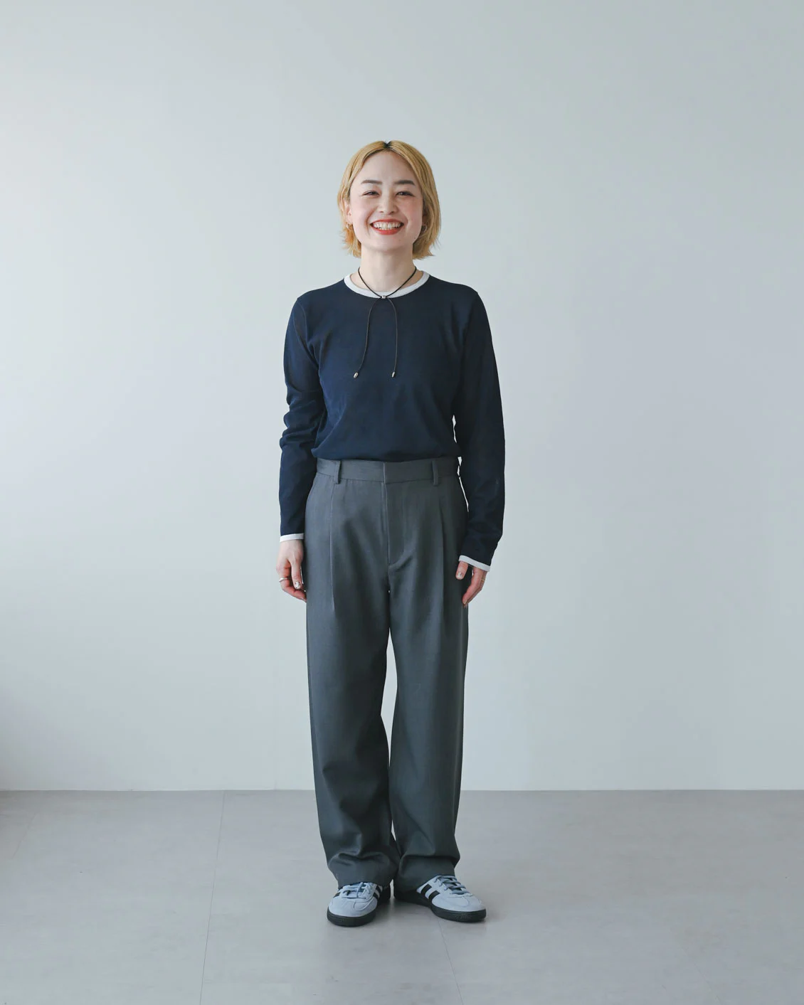 後ろのシルエットもきれいです。ウエストをインしたり、アクセントにベルトをつけたりといろんな着こなしを楽しめるパンツだなと思いました」