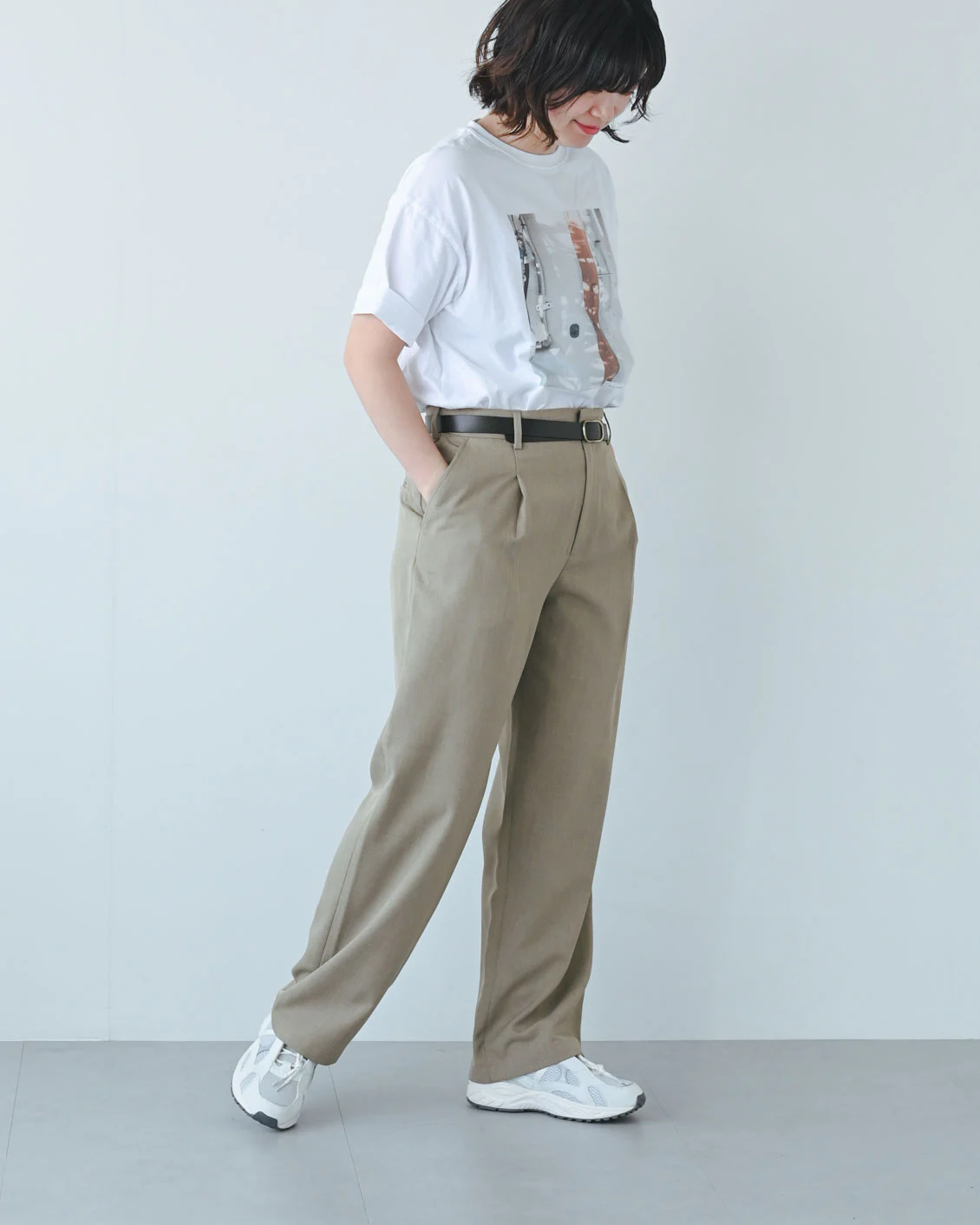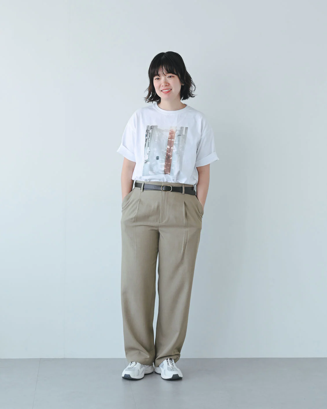 カジュアルなTシャツやハイテクスニーカーと合わせても、このパンツがあれば大人っぽく上品な印象を保てるのが嬉しいなと思いました」