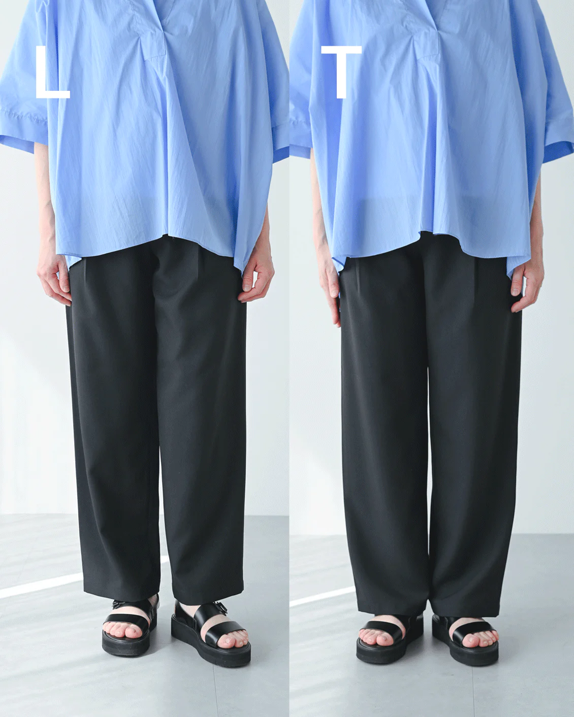 Tサイズと比べると足元に抜け感が生まれるので、すっきりした丈感がお好みの方はこちらでも良さそう。