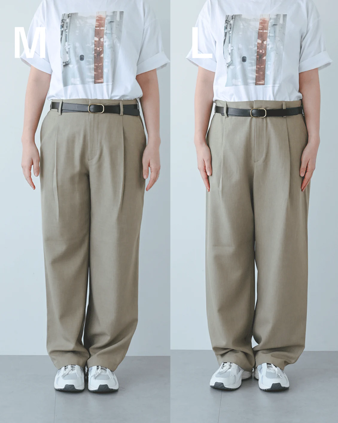 当店のボトムスはLまたはTサイズ。無印やユニクロの場合、Lサイズ。