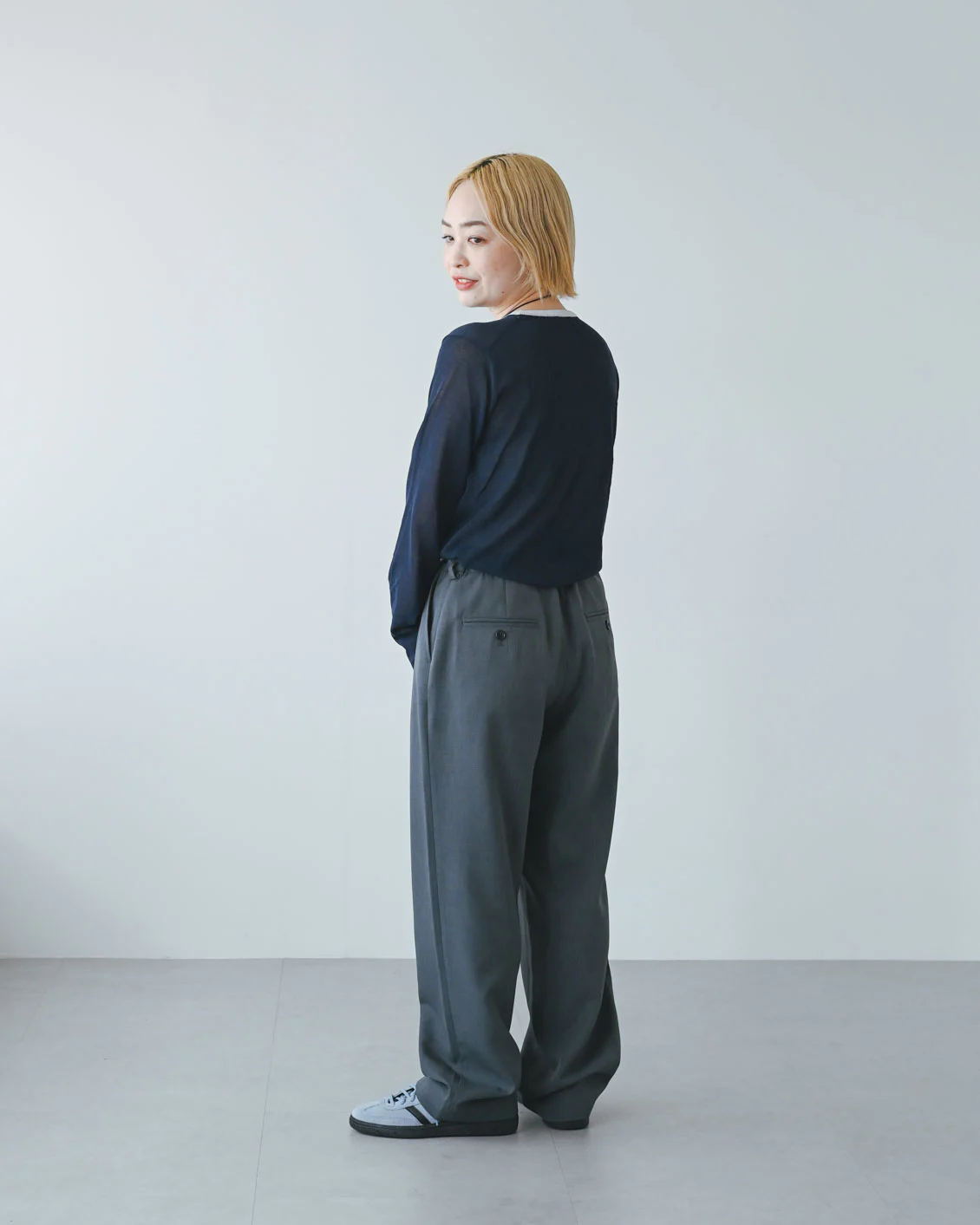 ウエストは絞ってもまだ余裕があるくらいゆったりとした作り。でも、不思議とシルエットが崩れることはなく、むしろそのゆとりが、上品な落ち感を生み出しているように感じます」