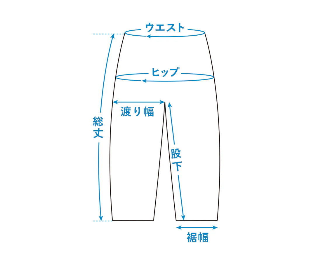 2026年4月入荷分より、サイズを見直しました。前回入荷分からウエストを広げ、総丈と股下を長くしています。詳しくは下記のサイズ表をご覧ください。