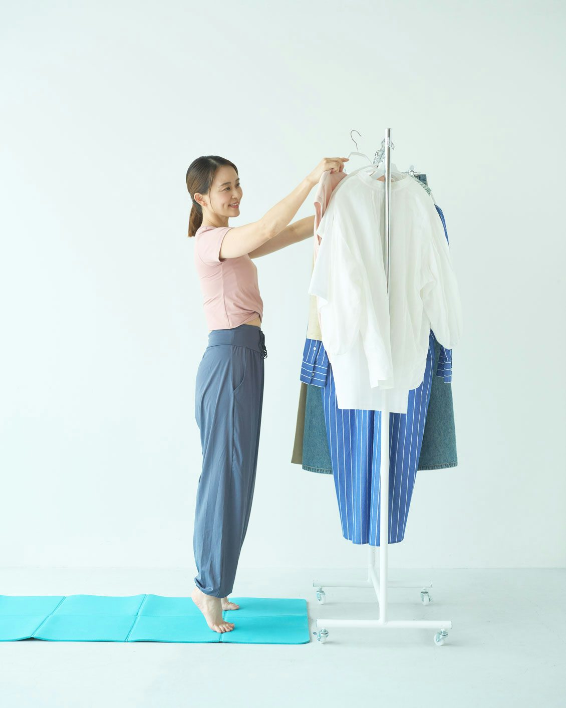 「クローゼットで服を選ぶときや食器洗いのときなど、立ったまま何かをする時間は、つま先立ちをしてふくらはぎに刺激を入れています。かかとを『上げて、下ろして』を繰り返すんです。
