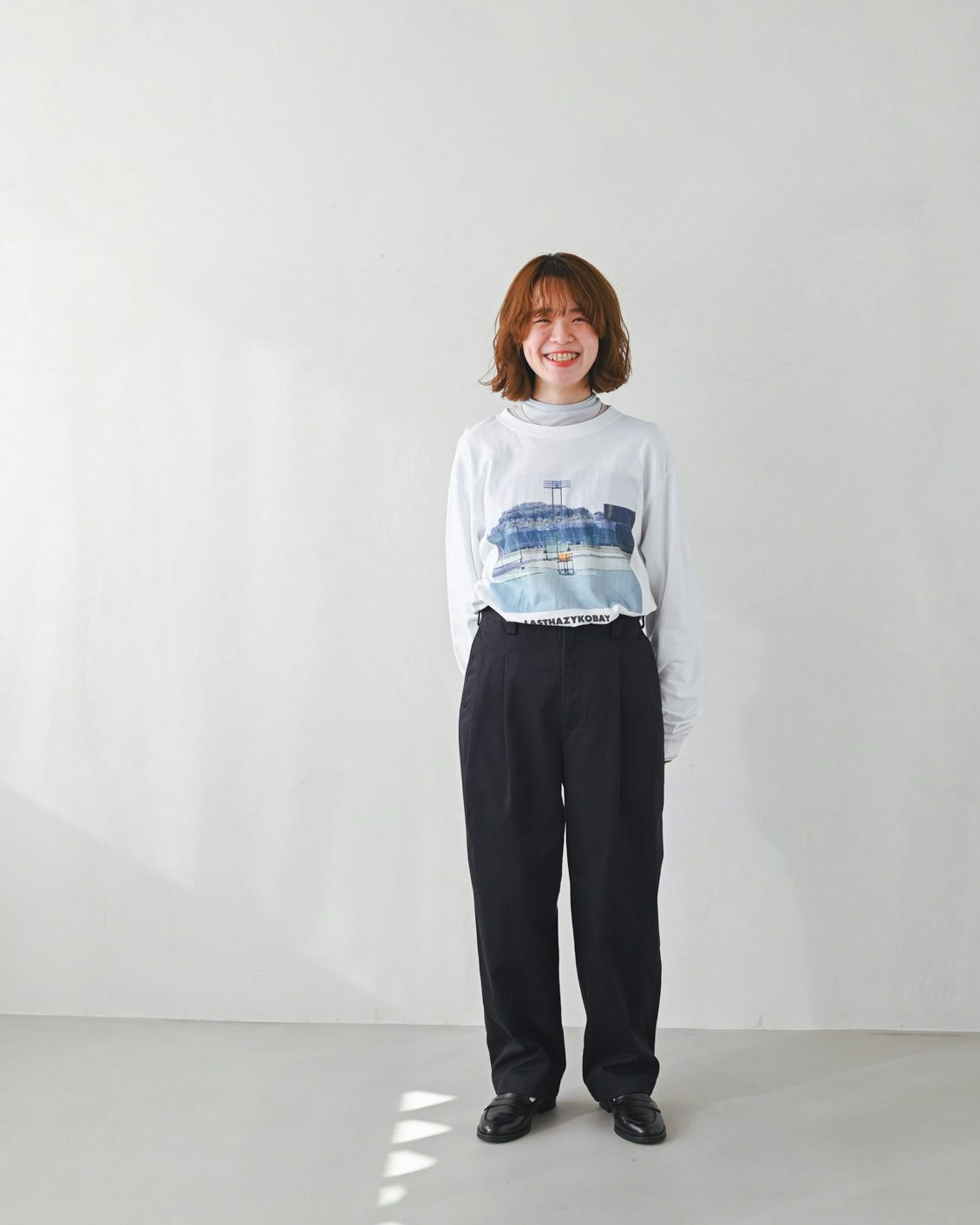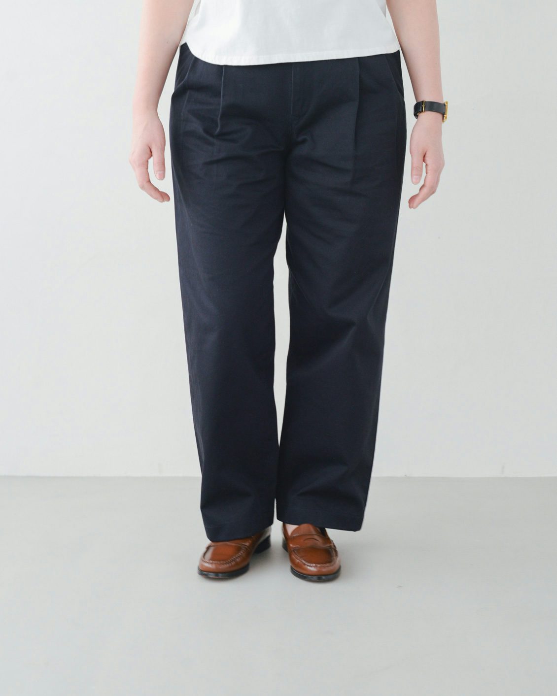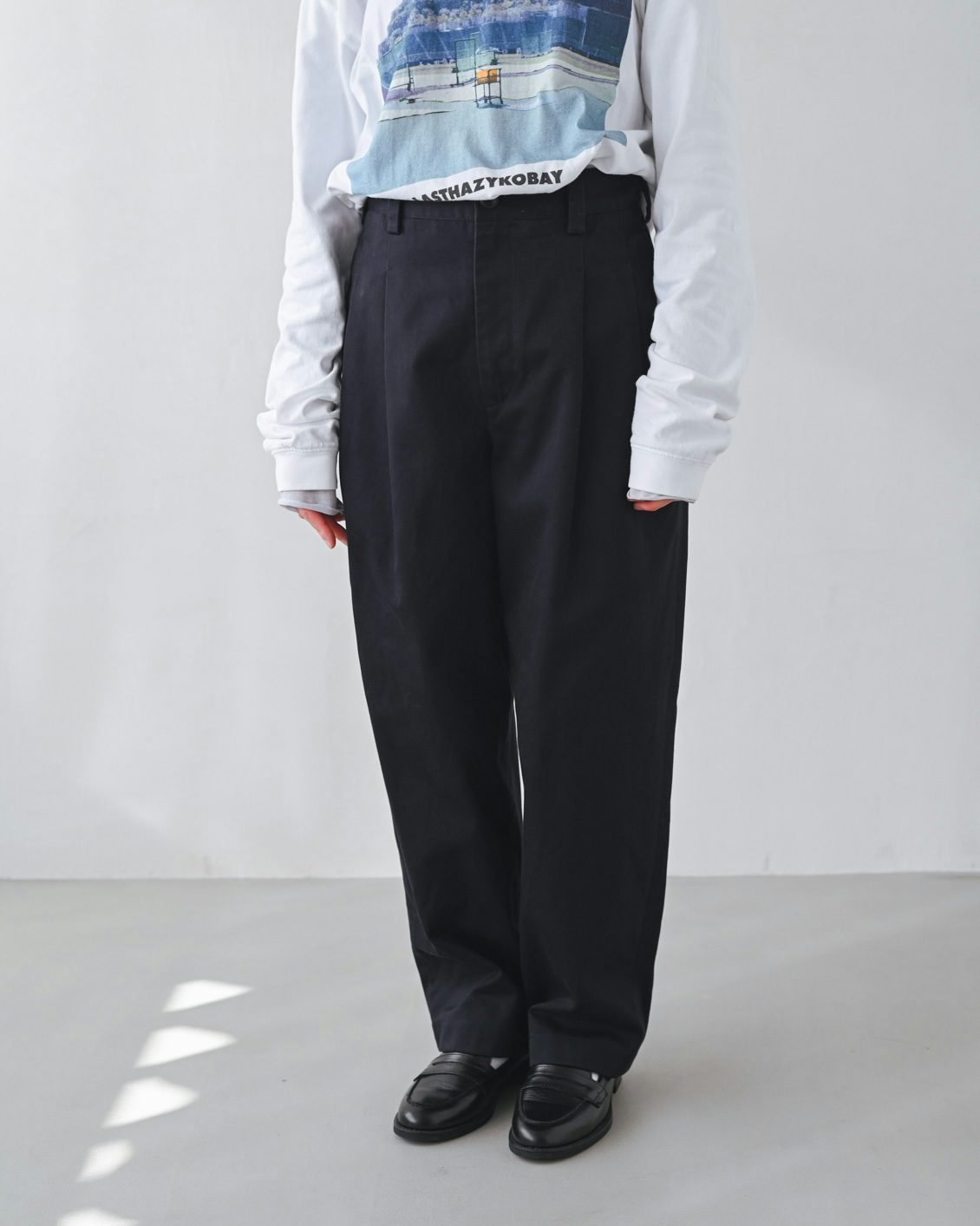 正統派でクラシカルなチノパンだから、何と合わせてもいいですよね。ボーダーのTシャツとか、シンプルな白Tシャツとか、潔いコーディネートをぜひ試してみたいです」