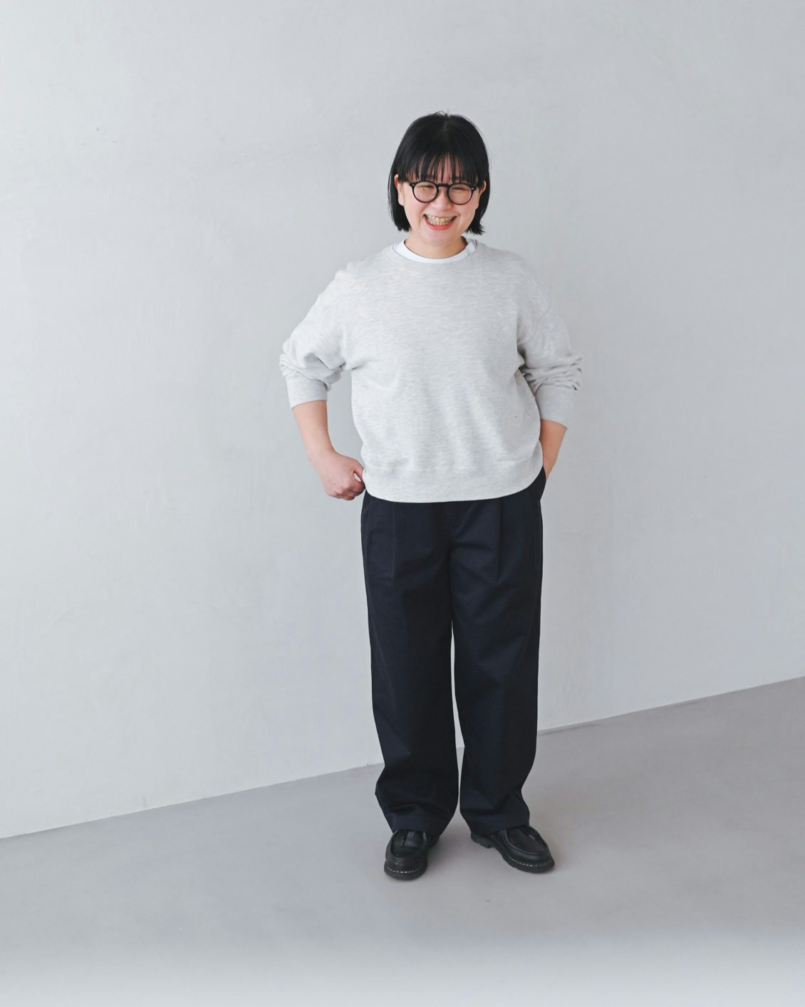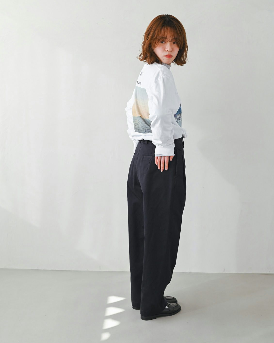 革靴を合わせてゆるりと穿いたり、スニーカーに合わせてロールアップしたり。ウエストにゆとりがある分、動きやすくて安心感があるのも嬉しいポイントでした」