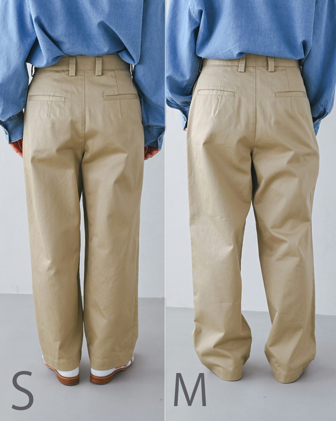 当店のボトムスはMサイズ。他ブランドだとS〜Mから選ぶことが多い。