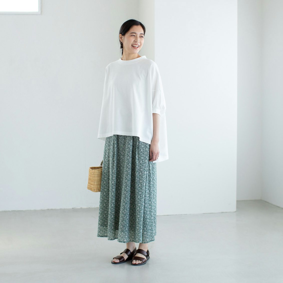 適度にカジュアルダウンしてくれる爽やかなホワイトは、花柄スカートに合わせても甘くなりすぎることなく着られます。