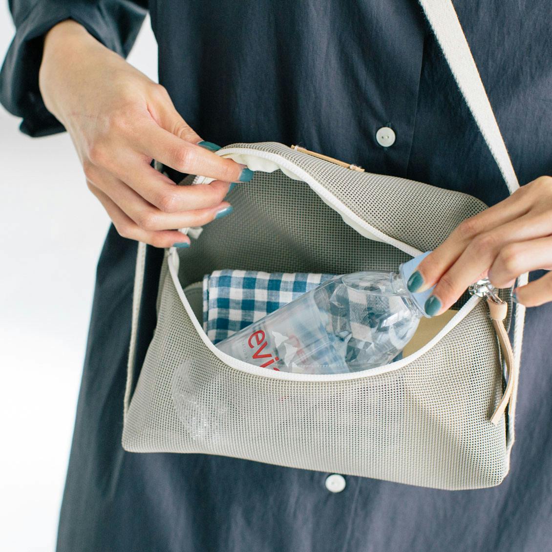 サコッシュに使われているのは、上品なつや感のある特別なメッシュ生地。