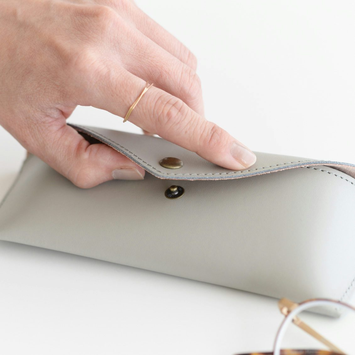 一見シンプルな見た目ですが、小さな工夫が詰まっていて、他にはないメガネケースが出来上がりましたよ。