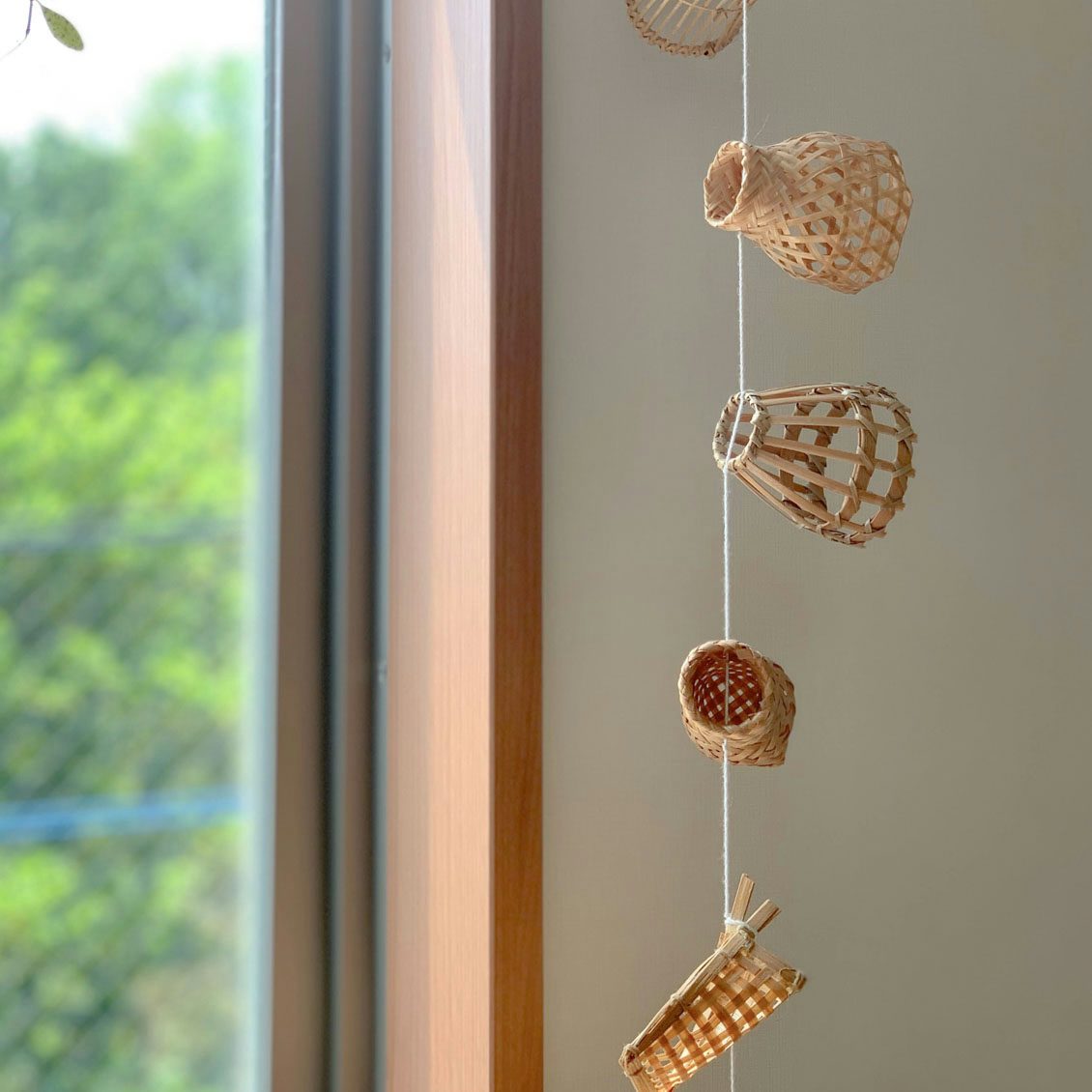 ガーランドについているのは、竹と籐を使って手編みで作られた、5種類の小さなカゴ。