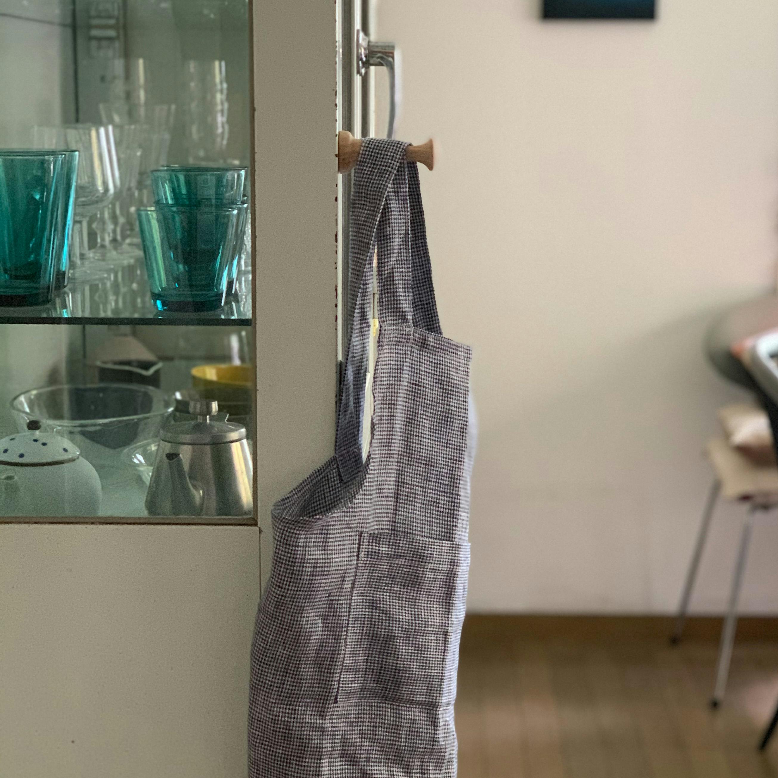 リトアニアリネン100%のエプロンは、吸水性に優れ、乾きが早く、じゃぶじゃぶお洗濯できるので、汚れを気にせず使えます。