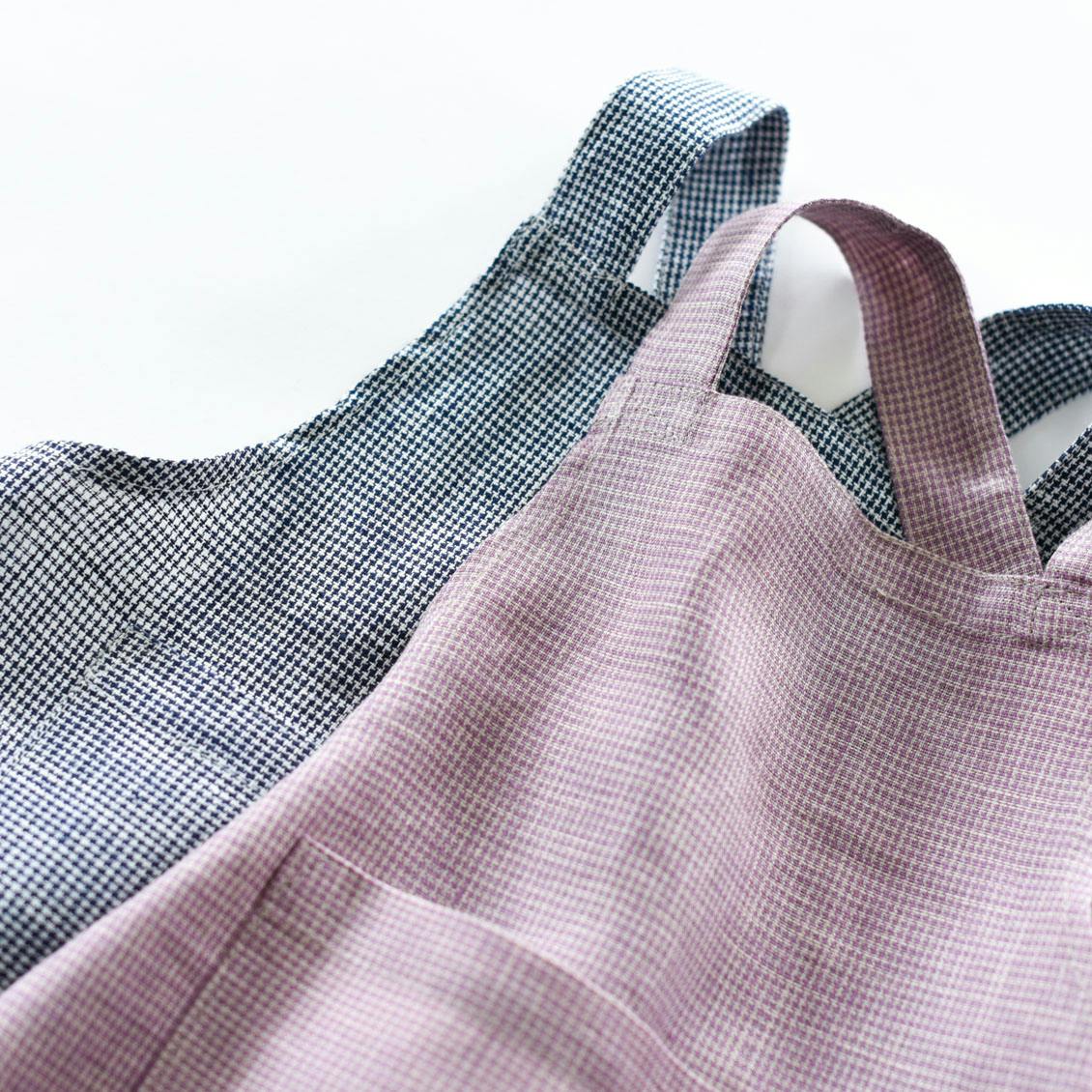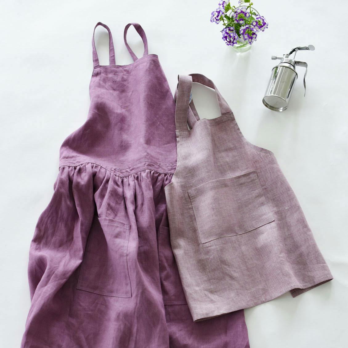 柄もデザインも違いますが、同じリネン素材で作ったオリジナルエプロンなら、さりげなくお揃いコーデを楽しめます。