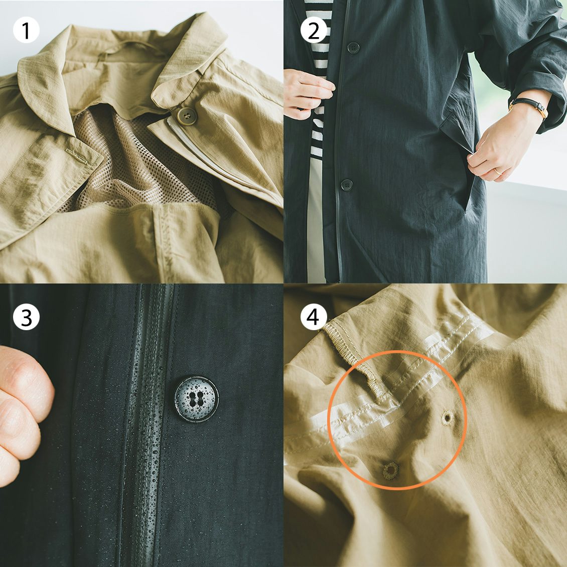 雨の日は、このコートがあれば、いつもとは違う準備に慌てなくても、雨を気遣いすぎた服でなくてもいい。
