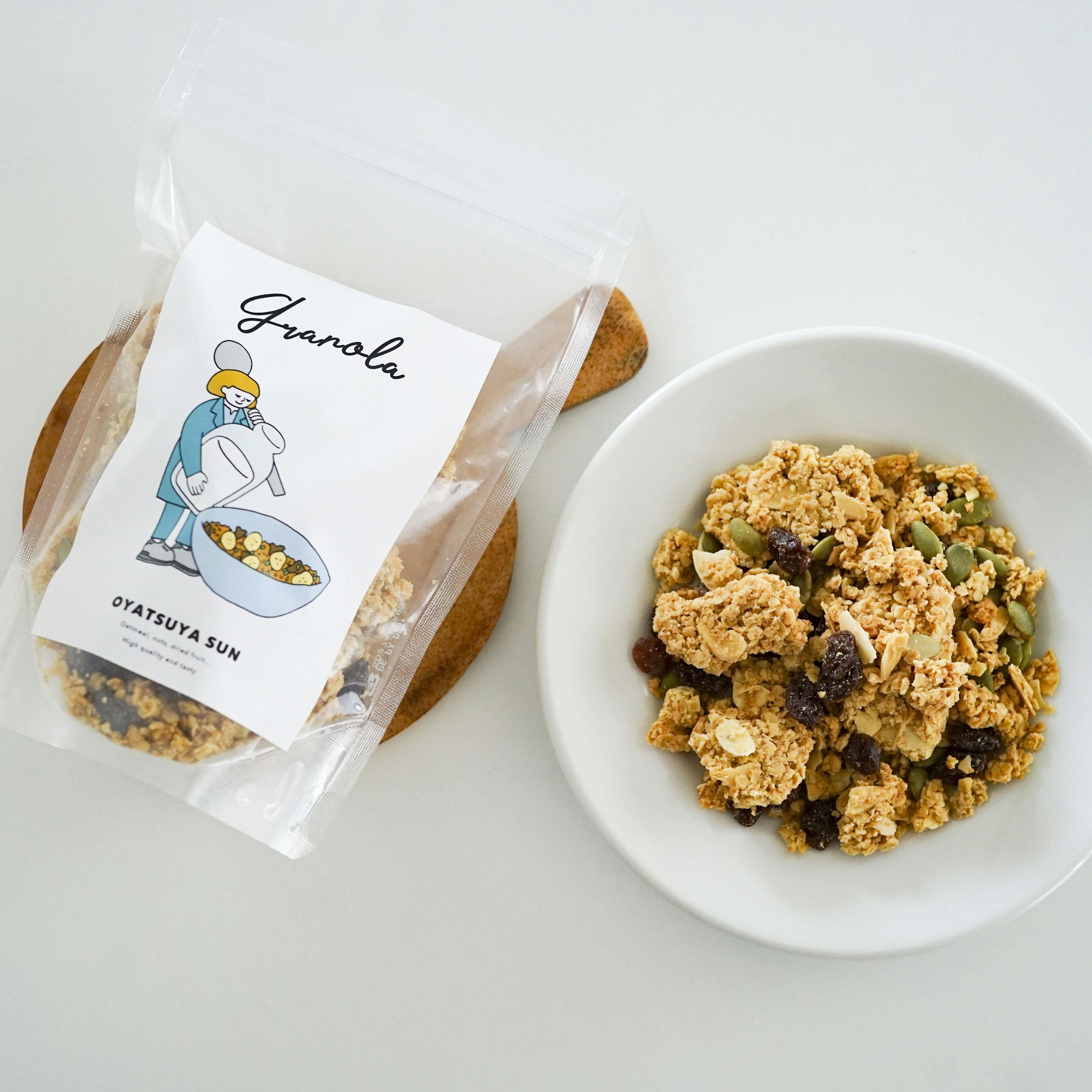 ・開封後は早めにお召し上がりください。 ・白い粉をふいているレーズンが見られる場合がございますが、こちらは糖質が乾燥して白くなったものとなります。品質に問題はございませんので、ご安心ください。 ・様々な食感を味わっていただきたいという思いから、グラノーラ本来のサラサラとした形状の他、塊状のものや粉状のものなど色々な形状のグラノーラを袋に詰めています。また、手作りのためグラノーラに多少のバラつきがございます。この点ご理解いただけますようお願いいたします。 |