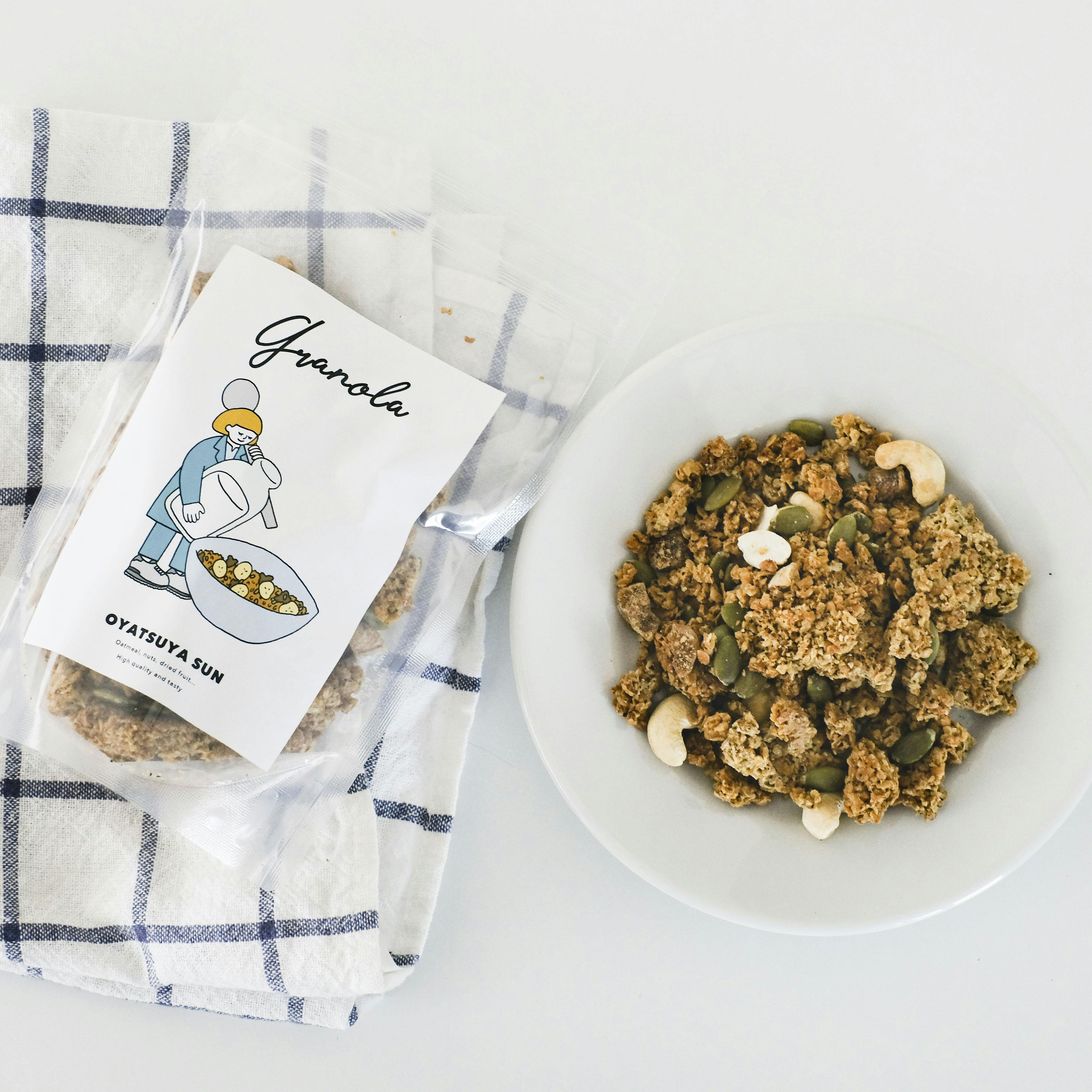 ご好評をいただいている『 OYATSUYA SUN(オヤツヤサン)』から新たなパッケージのグラノーラが届きました!