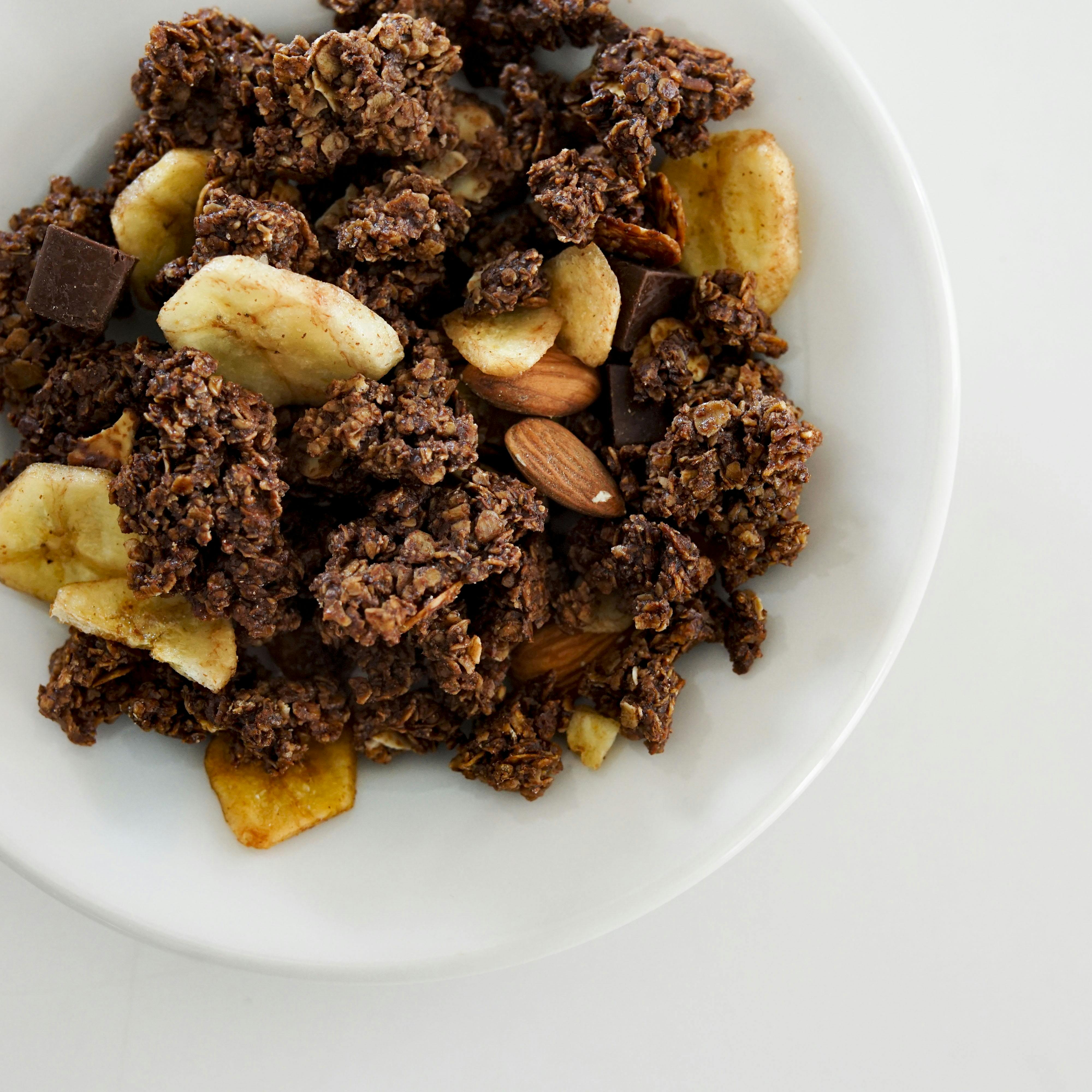 | 原材料 | オートミール、はちみつ、菜種油、小麦全粒粉(北海道産)、三温糖、バナナチップ(バナナ、ココナッツオイル)、アーモンド、アーモンドスライス、チョコチャンク(砂糖、カカオマス、植物油脂、全粉乳、ココアバター、乳化剤、香料)、ココアパウダー、塩(沖縄県産)
