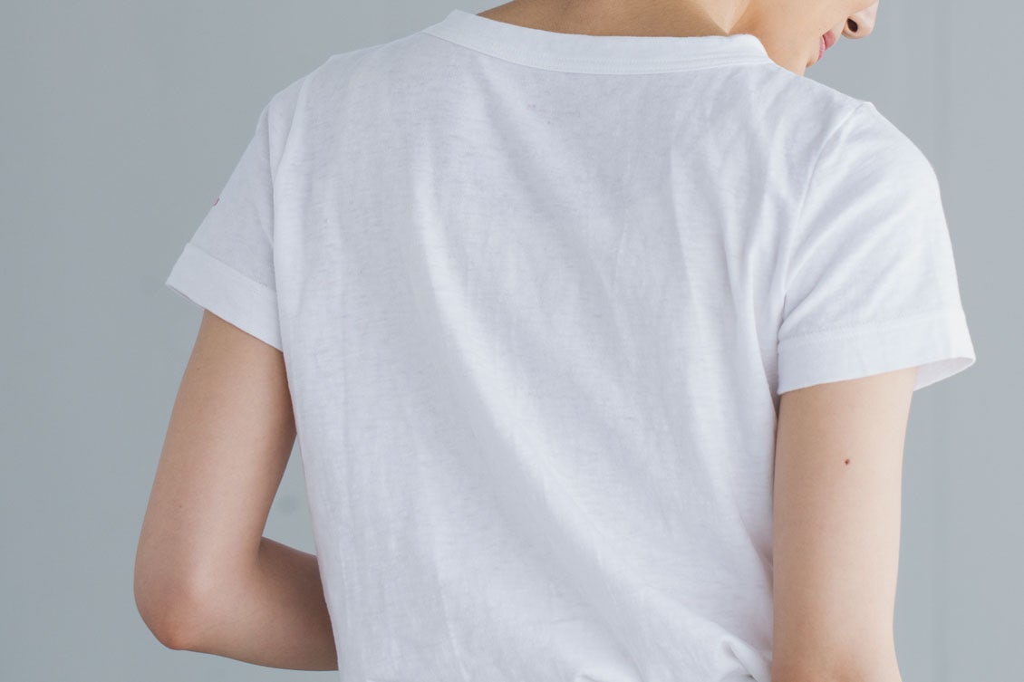 一見シンプルなTシャツに見えますが、かなり細部まで、こだわりが詰まった一着。