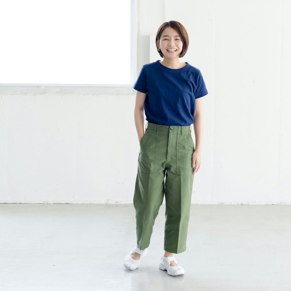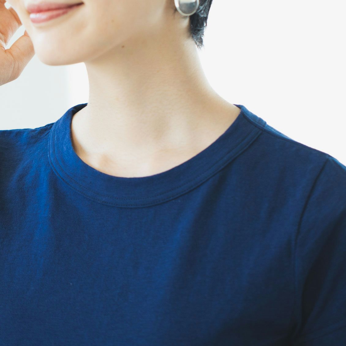 ですがこのTシャツの襟ぐりは、絶妙に計算された開き具合。デコルテを出しすぎず、首を華奢に、きれいに見せてくれます。